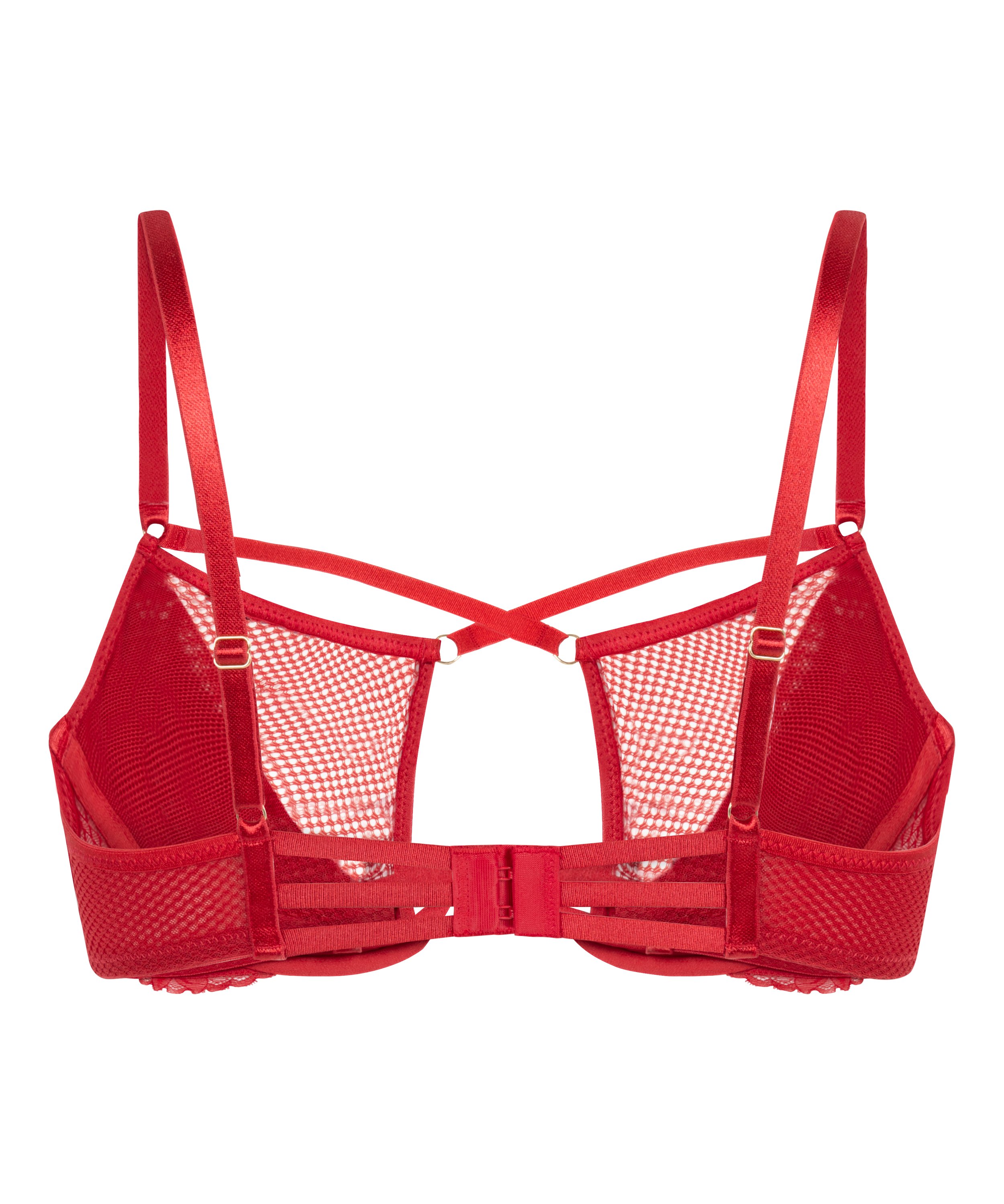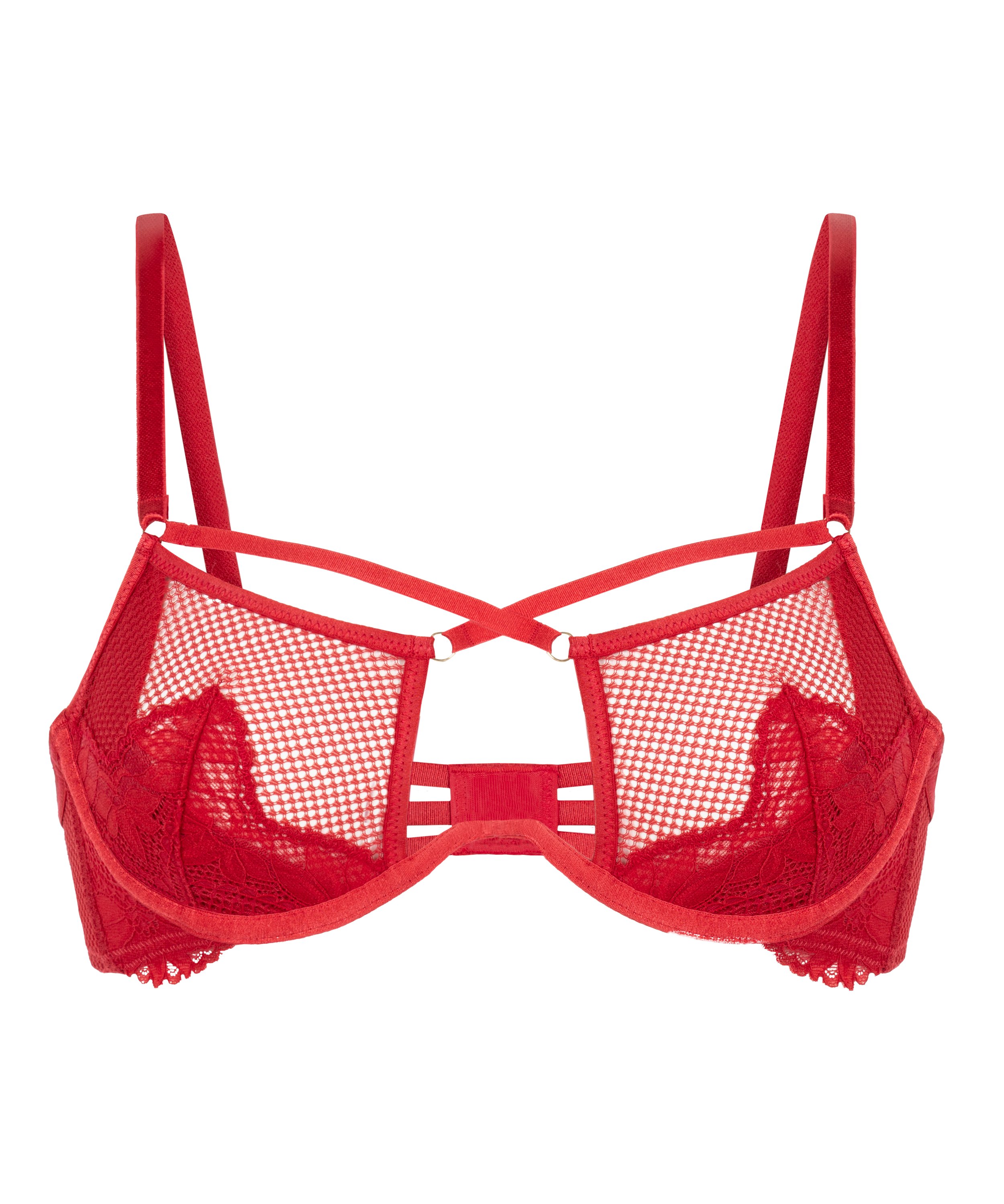 Diseñado para llamar la atención, este sujetador con aros y sin relleno combina un diseño atrevido con delicados detalles. Las copas estructuradas ofrecen una forma y sujeción naturales, mientras que la combinación de rejilla y encaje crea un llamativo contraste.Se puede combinar con el tanga a juego para un look total.