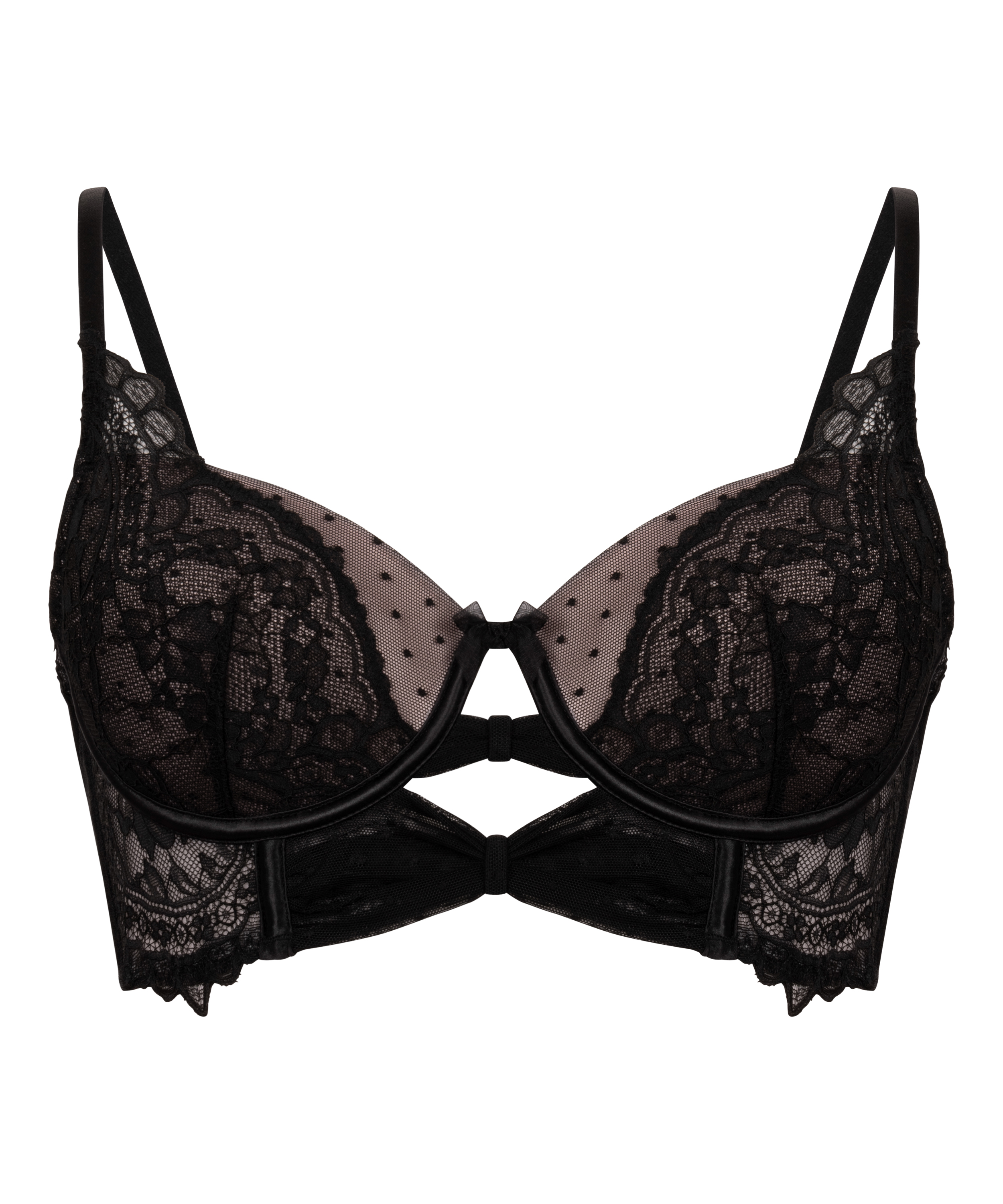 Amplia tu colección de lencería con nuestro sujetador Juliette. El diseño de línea ofrece un ajuste favorecedor y soporte adicional, mientras que los detalles de encaje y malla le aportan un toque romántico. El lazo añade un encanto juguetón y femenino. Combínalo con una braguita a juego para un look completo.