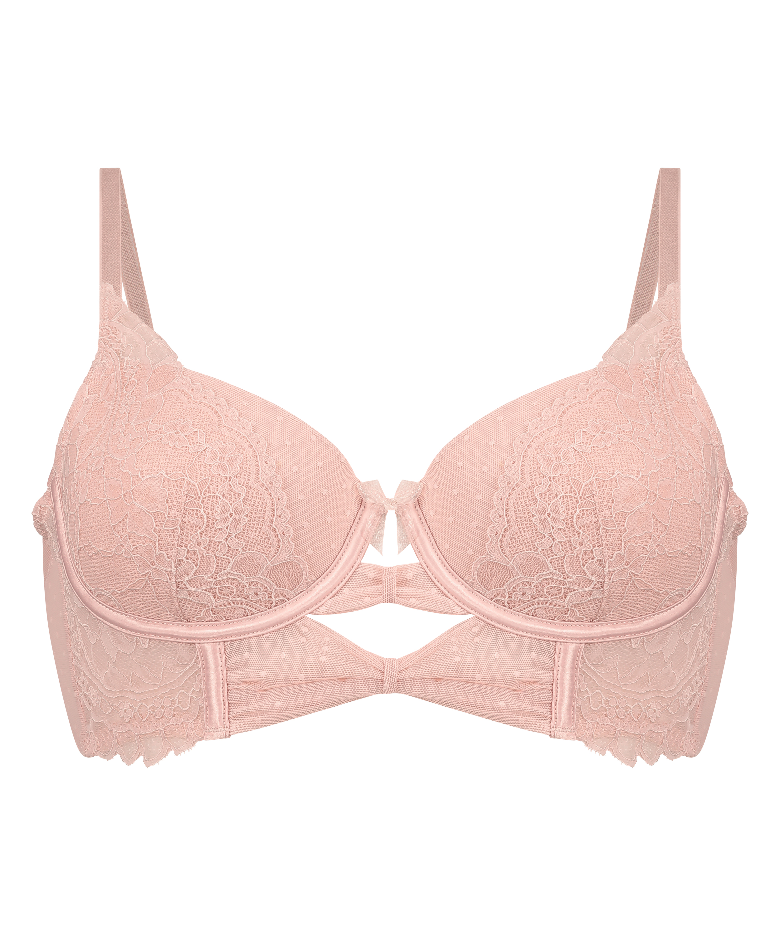 Amplia tu colección de lencería con nuestro sujetador Juliette. El diseño de línea ofrece un ajuste favorecedor y soporte adicional, mientras que los detalles de encaje y malla le aportan un toque romántico. El lazo añade un encanto juguetón y femenino. Combínalo con una braguita a juego para un look completo.