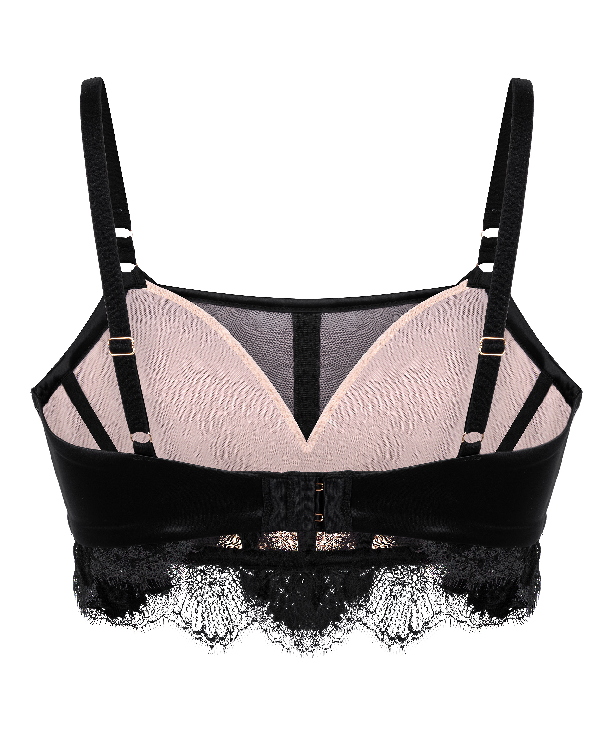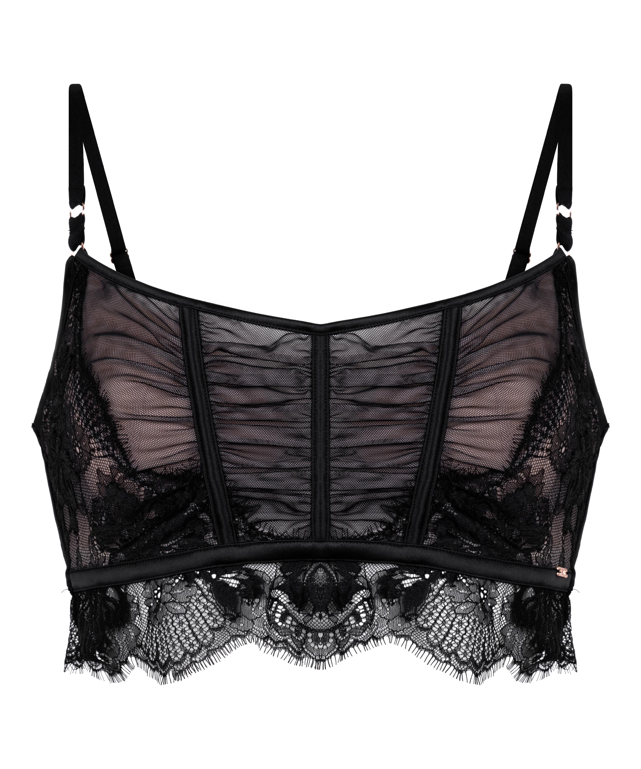 Este sujetador largo sin relleno está hecho para llamar la atención. Celebra su forma natural al tiempo que ofrece un soporte suave. La silueta longline alisa y esculpe, mientras que los paneles de malla con volantes añaden un movimiento juguetón. Se puede combinar con la braguita a juego para lucir un look ideal.