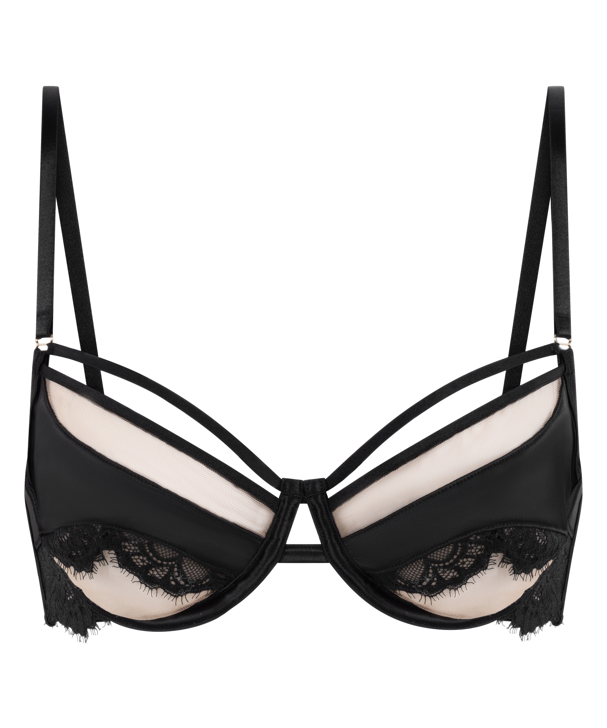 Este sujetador cuenta con un diseño de tiras intrincado que enmarca y realza los contornos naturales, combinando elegancia con un toque atrevido. Parte de nuestra Colección Privada.