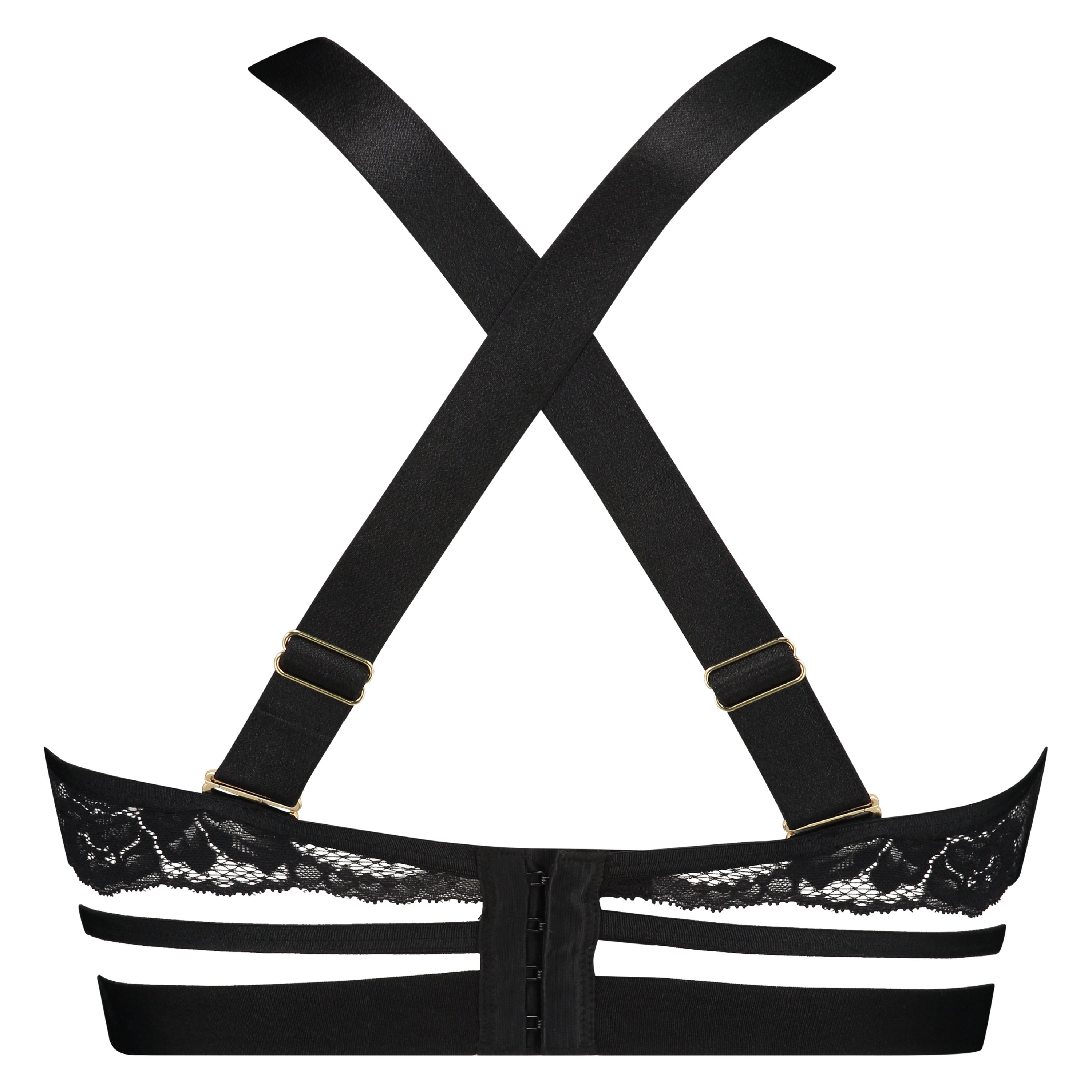 Este sujetador de aros no preformado tiene un acabado de abundante encaje y detalles de piel, ¡por lo que es súper sexi! Se trata de un sujetador longline y las cintas en la espalda se pueden llevar tanto derechas como cruzadas. Forma parte de la colección Private.
