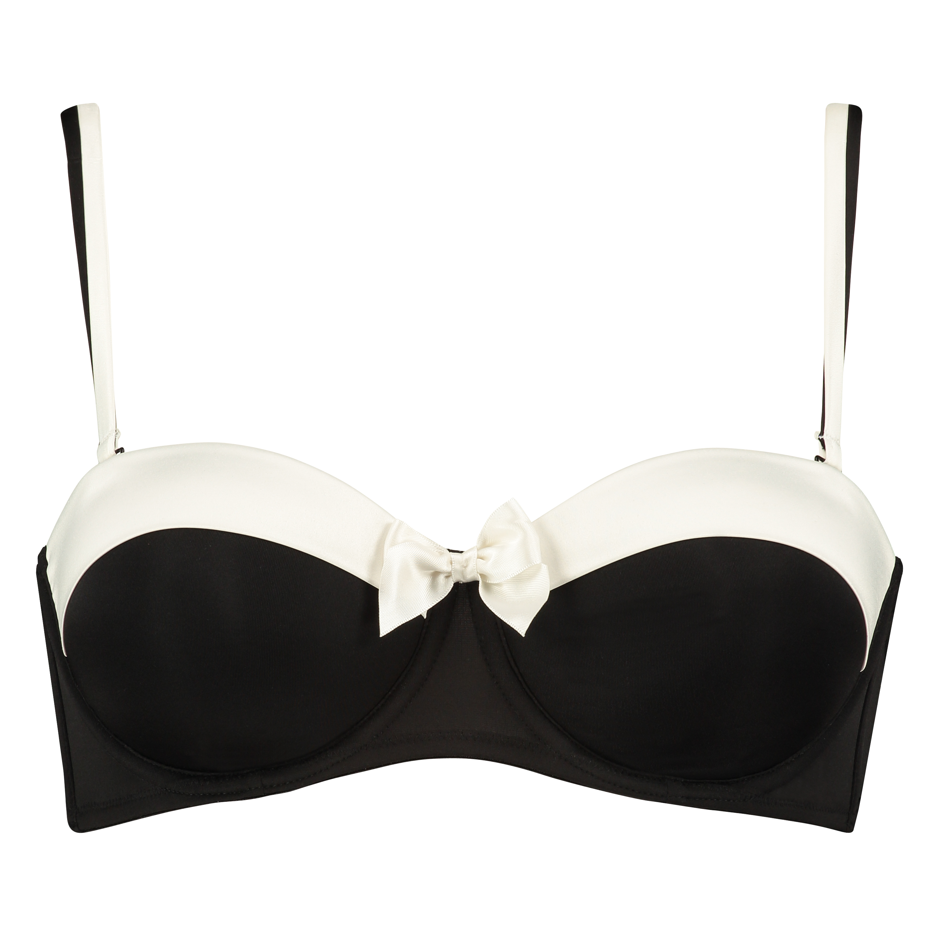 Este romántico sujetador preformado sin aros cuenta con un acabado de material de aspecto satinado en la parte superior de sus copas. Un lacito entre las copas junto con tirantes dobles se encargan de darle el toque final.