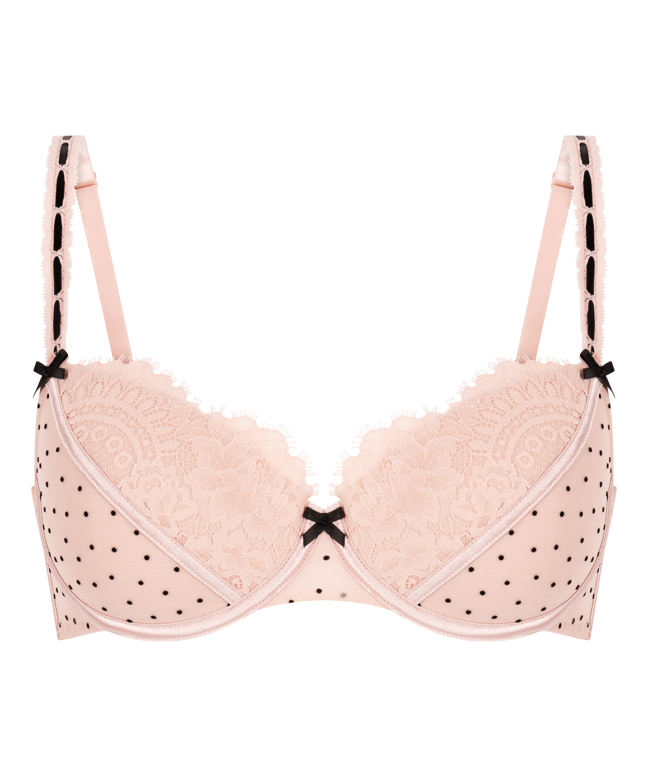 Añade un toque de encanto a tu colección de lencería con nuestro sujetador Dorothy. Diseñada con suaves almohadillas y aros de sujeción, ofrece una favorecedora elevación y comodidad durante todo el día. Las copas presentan una mezcla de malla punteada y detalles de encaje. Acabado con lazos en los ligueros y en el centro delantero. Se puede combinar con la braguita a juego para lucir un look ideal.