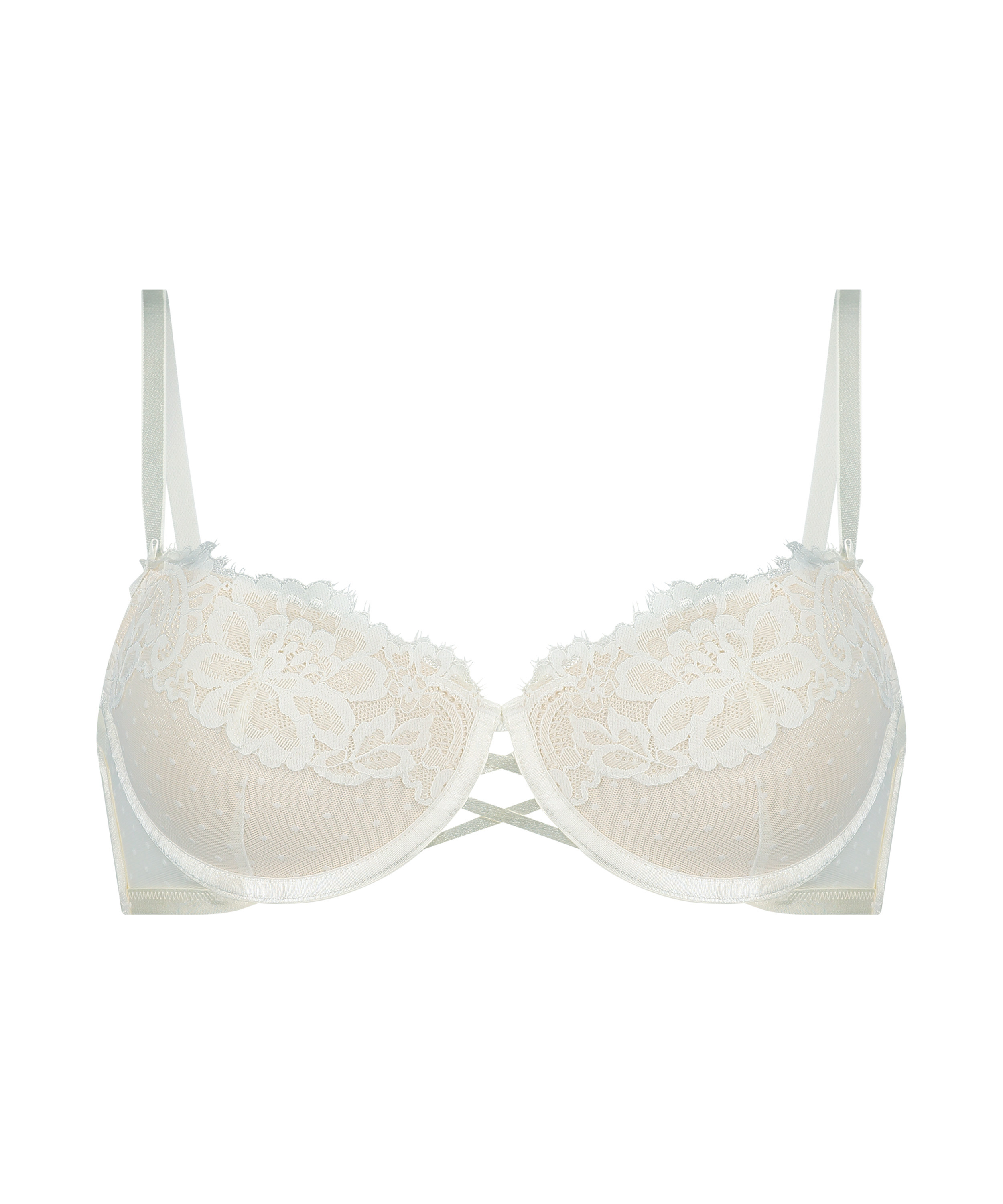 ¡Saborea la esencia de la sensualidad con nuestro sujetador Harmony! Las copas lujosamente preformadas y decoradas con un delicado tejido de encaje, junto con un tentador detalle de tiras entre ellas, evocan un encanto irresistible. Realza tu conjunto coordinándolo con la braguita a juego, ¡dando confianza y encanto a cada paso!
