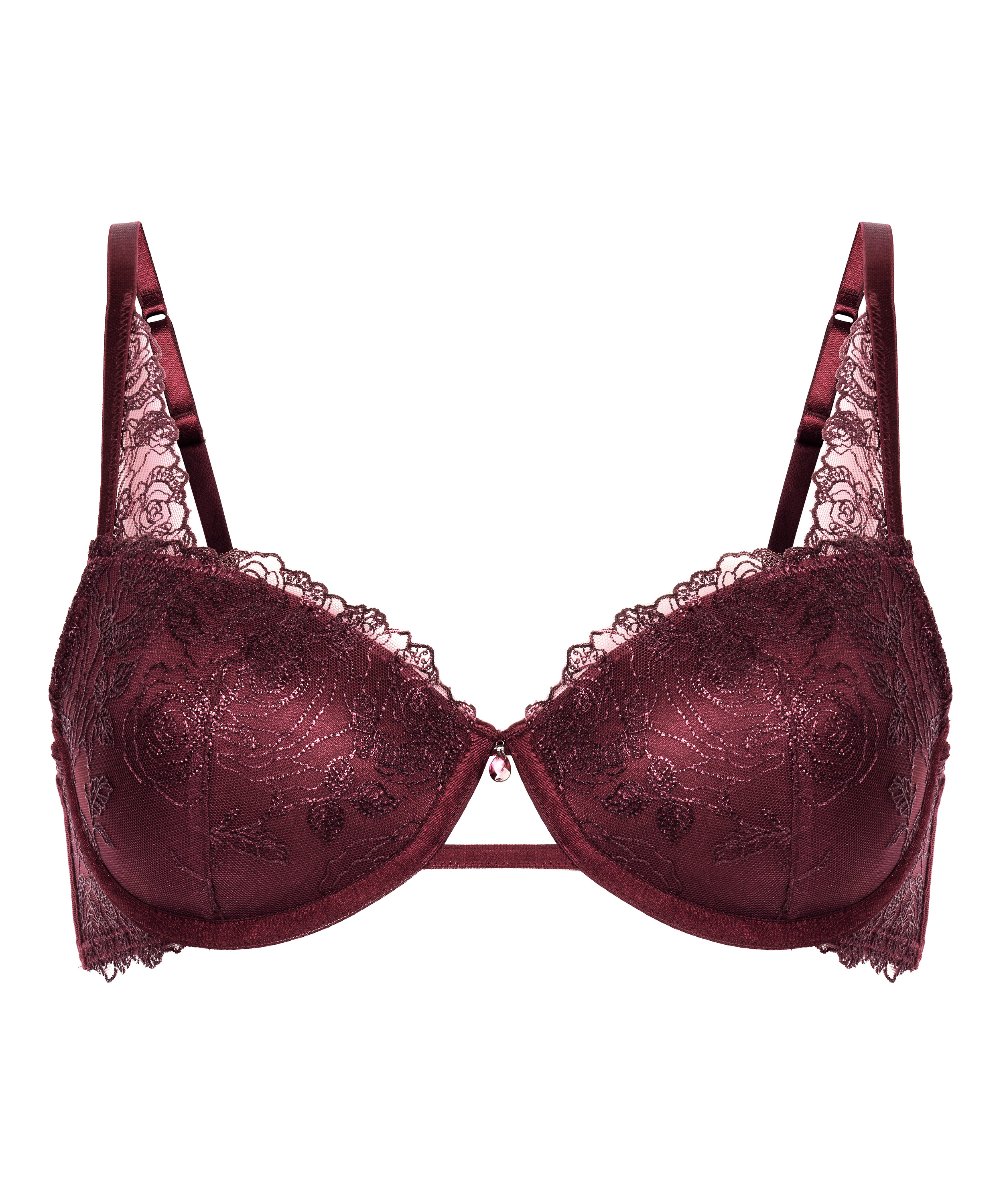 Diseñado para deslumbrar, este sujetador combina una sujeción estructurada con detalles. Las copas están preformadas para realzar tu forma natural, mientras que los aros ofrecen una suave elevación. Confeccionado en malla y flores bordadas, es un equilibrio perfecto de glamur y romanticismo. Se puede combinar con la braguita a juego para lucir un look completo.