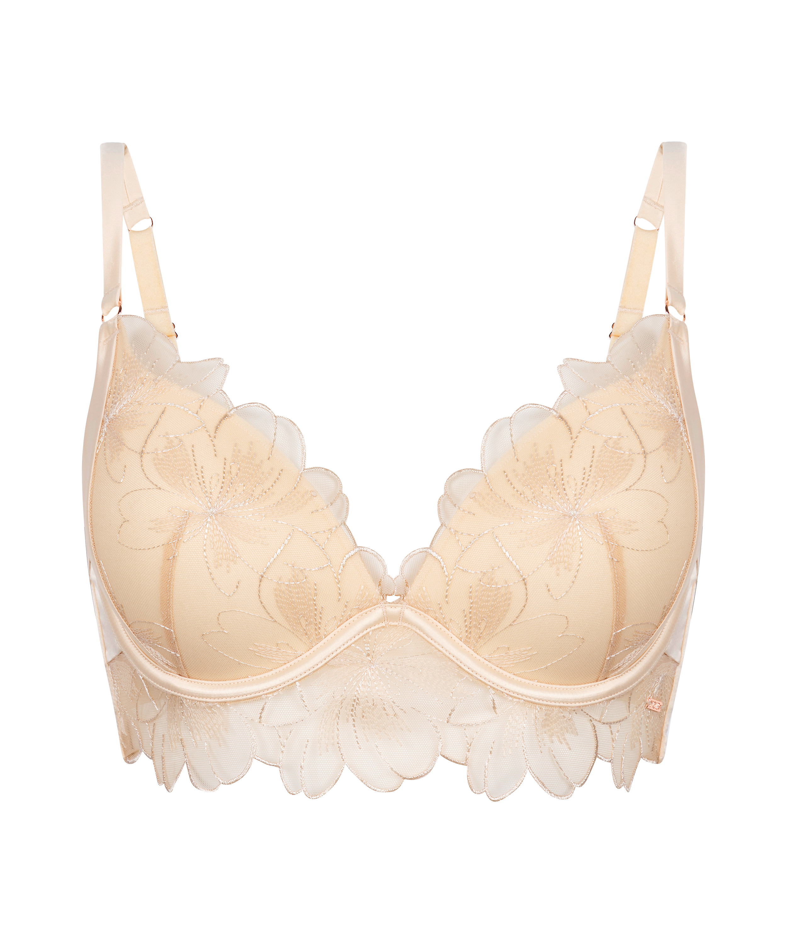 Impulsa tu colección de lencería con Emilia, un sujetador largo escotado, push-up y preformado. Con un delicado bordado floral y un diseño estructurado, ofrece un ajuste moldeado y favorecedor. Las copas preformadas con aros y los tirantes regulables garantizan sujeción y comodidad, ¡perfectas para un look que desprende confianza y encanto!