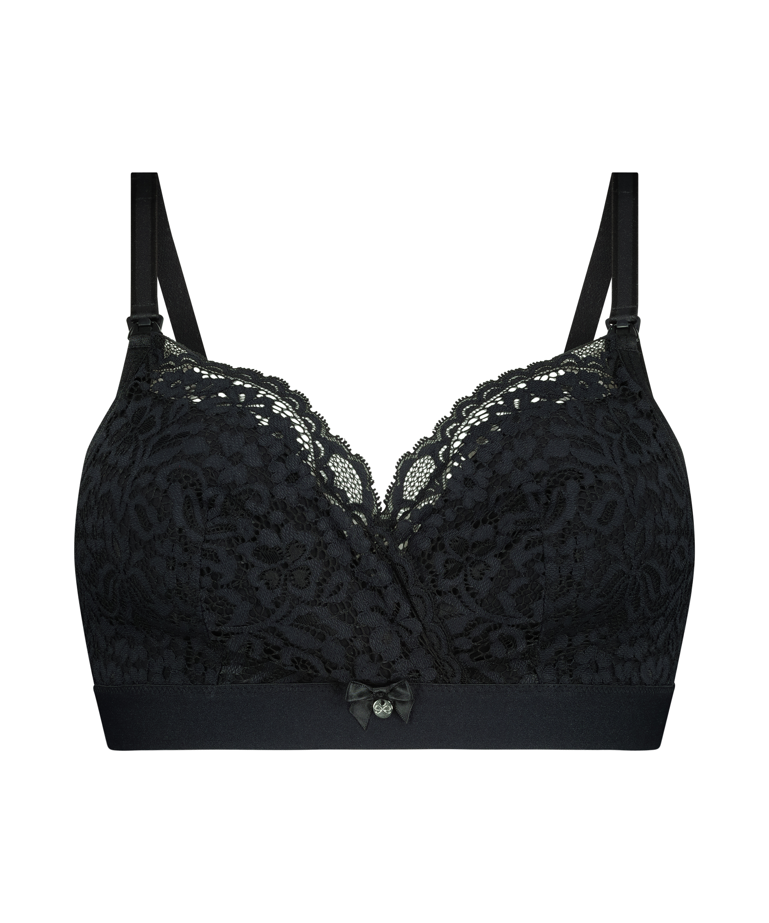 Este sujetador de lactancia preformado no es solo práctico, ¡sino también es muy bonito! El sujetador tiene un acabado de encaje sobre las copas. Las copas pueden desengancharse para que puedas amamantar cómodamente a tu bebé.