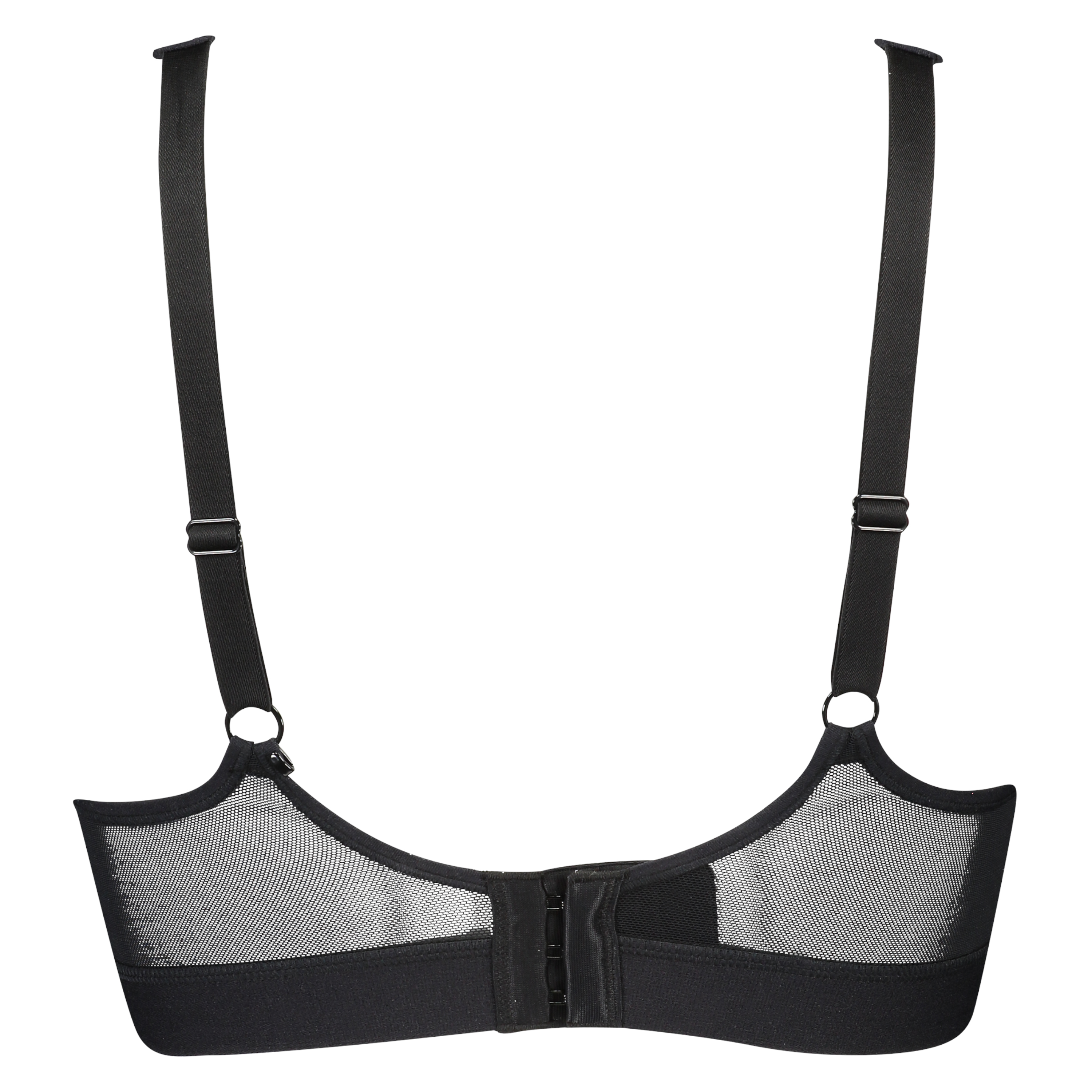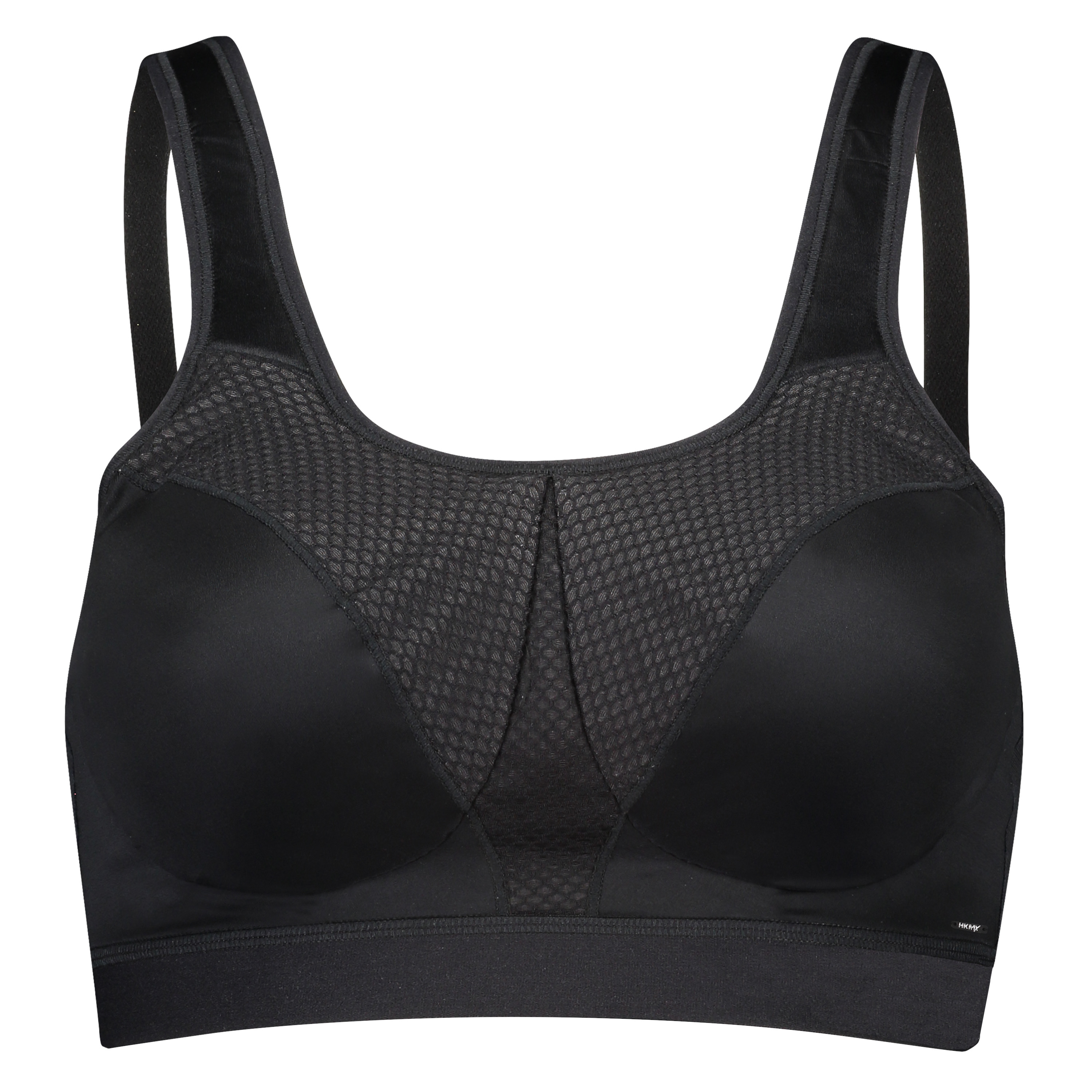 Sujetador deportivo sin rebote, especialmente diseñado para copas C - F. Proporciona la máxima sujeción durante entrenamientos intensivos. El material especial de rejilla mantiene el cuerpo seco y fresco durante la práctica de deporte. Los tirantes están unidos en la parte trasera, para ofrecer más sujeción. Uso indicado para pechos grandes en actividades de alto impacto.