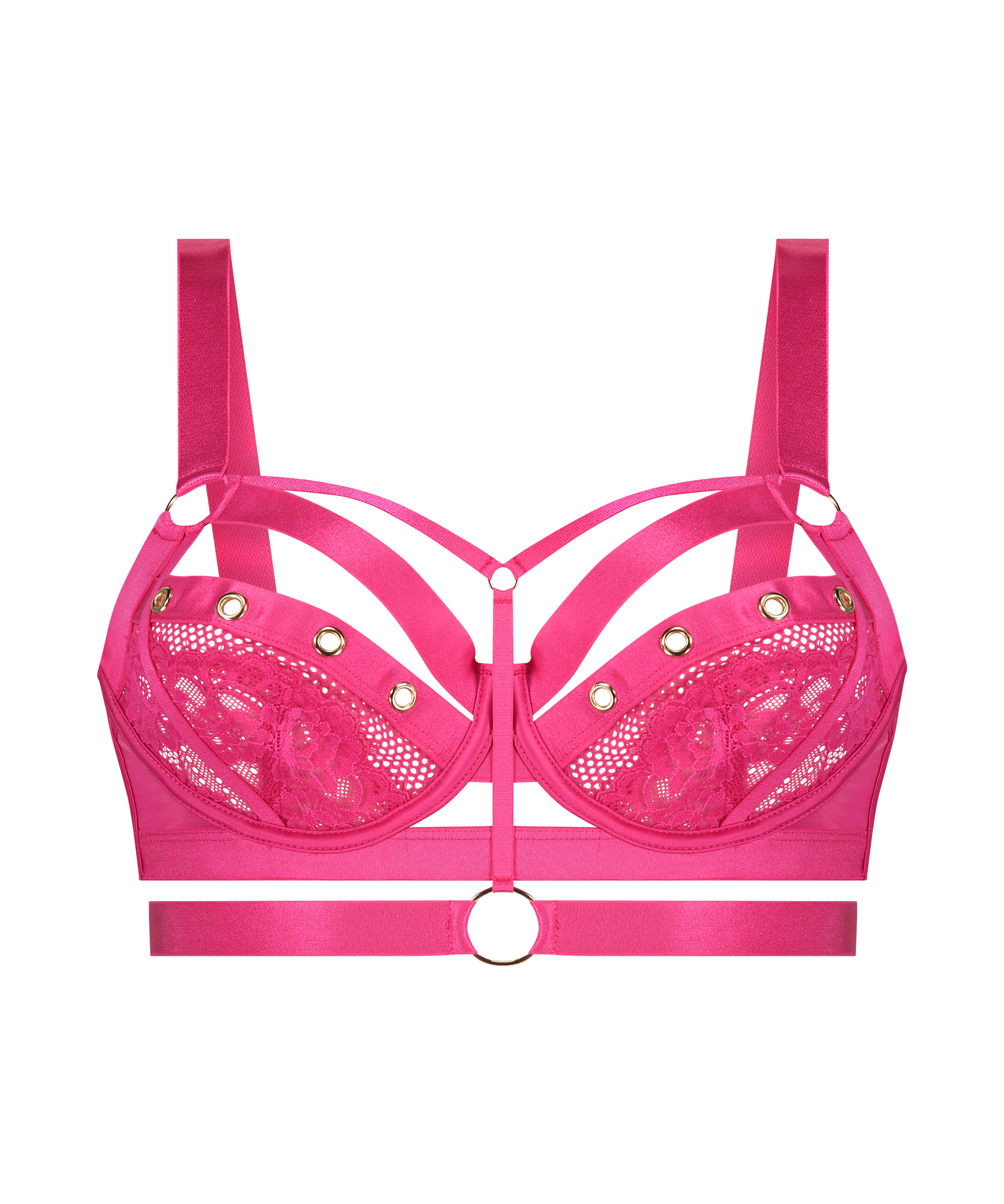 ¿Tienes ganas de seducir? ¡Entonces ponte este sujetador sexi! Este sujetador está cubierto casi por completo con tiras. Las copas están hechas de encaje. Además tiene un amplio cierre en la espalda, lo que lo hace muy cómodo. ¡Combínalo con una braguita a juego de la colección Private para completar tu look!