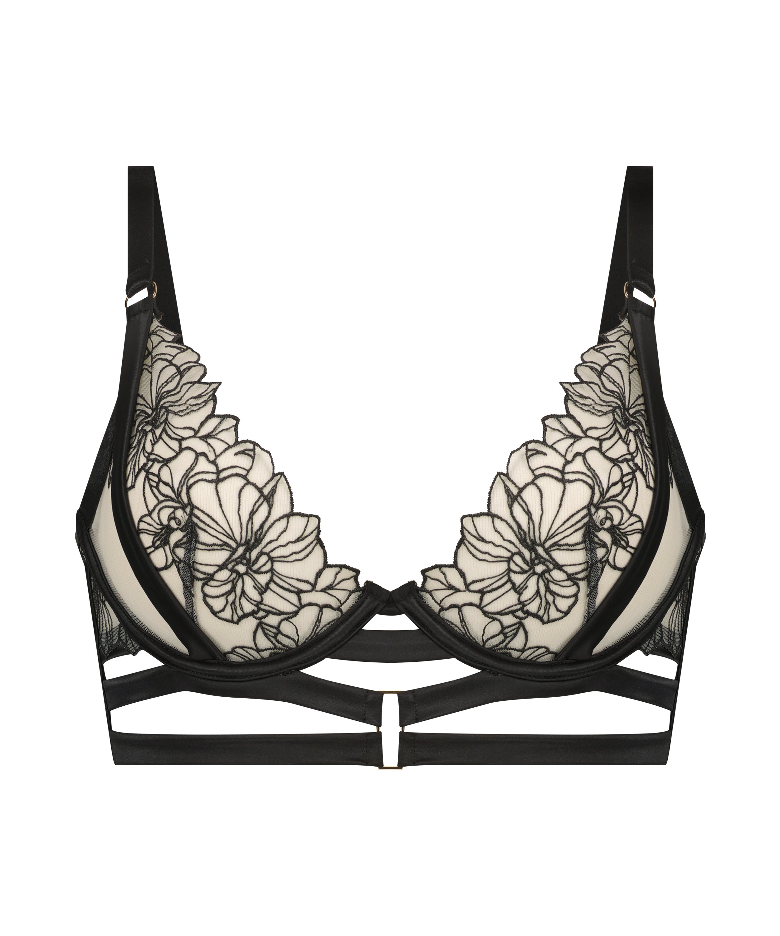 ¡Luce un look supersexi con este sujetador! Es transparente, tiene muchas tiras y un bonito estampado en las copas. ¡Combínalos con los artículos a juego! Artículo de la colección Private.