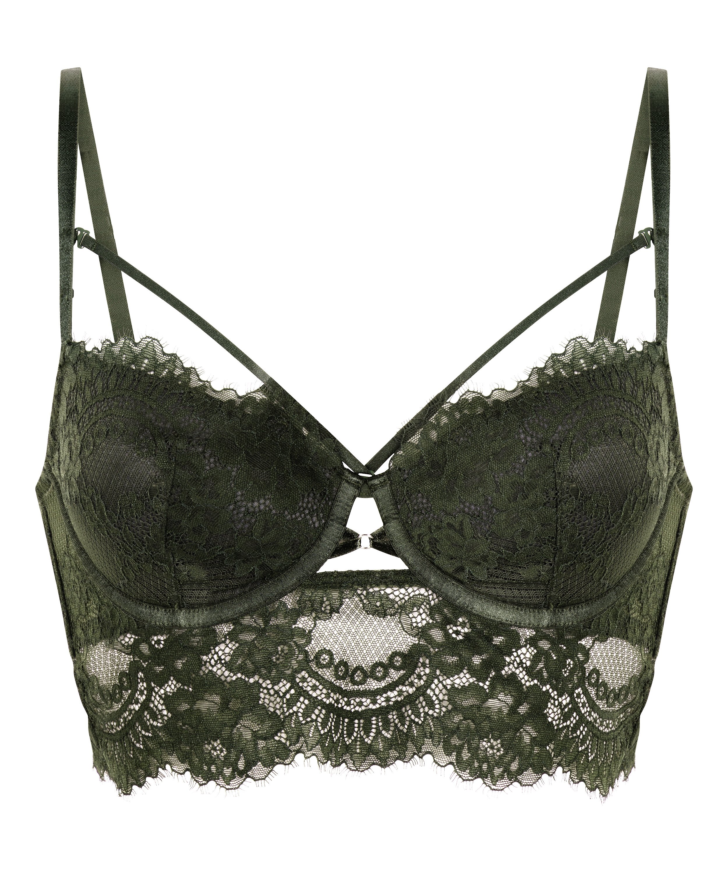 El soporte esculpido se une a la elegancia en este sujetador. Diseñado para realzar tu silueta, cuenta con copas acolchadas y aros para un ajuste firme y seguro. La silueta longlinge añade una estructura extra y un favorecedor efecto alisador. Se puede combinar con la braguita a juego para lucir un look ideal.