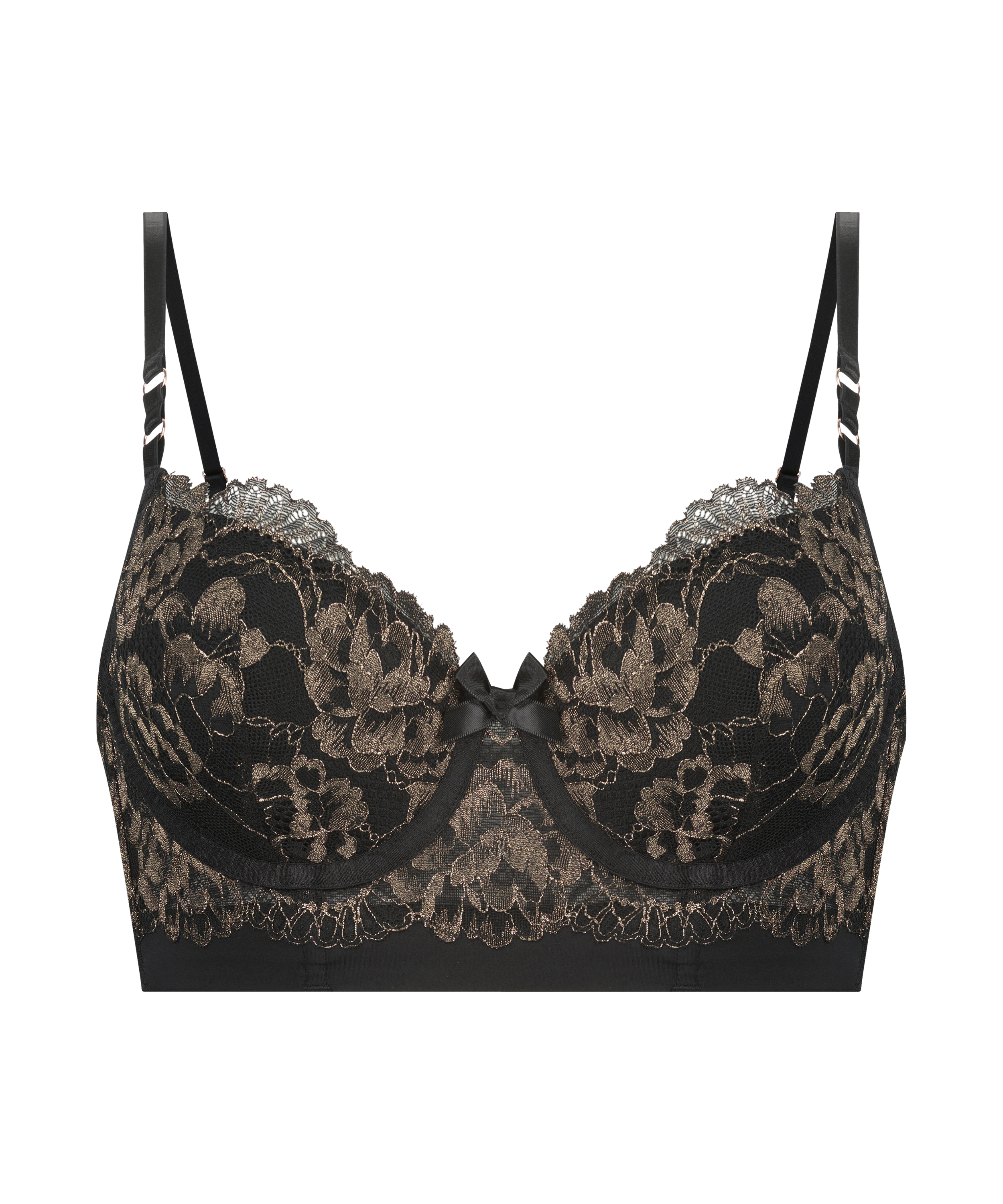 ¿A ti también te encanta este sujetador? Las copas tienen un precioso encaje brillante de lúrex y entre las copas hay un elegante lazo. ¡Combínalo con los artículos a juego para completar tu conjunto!