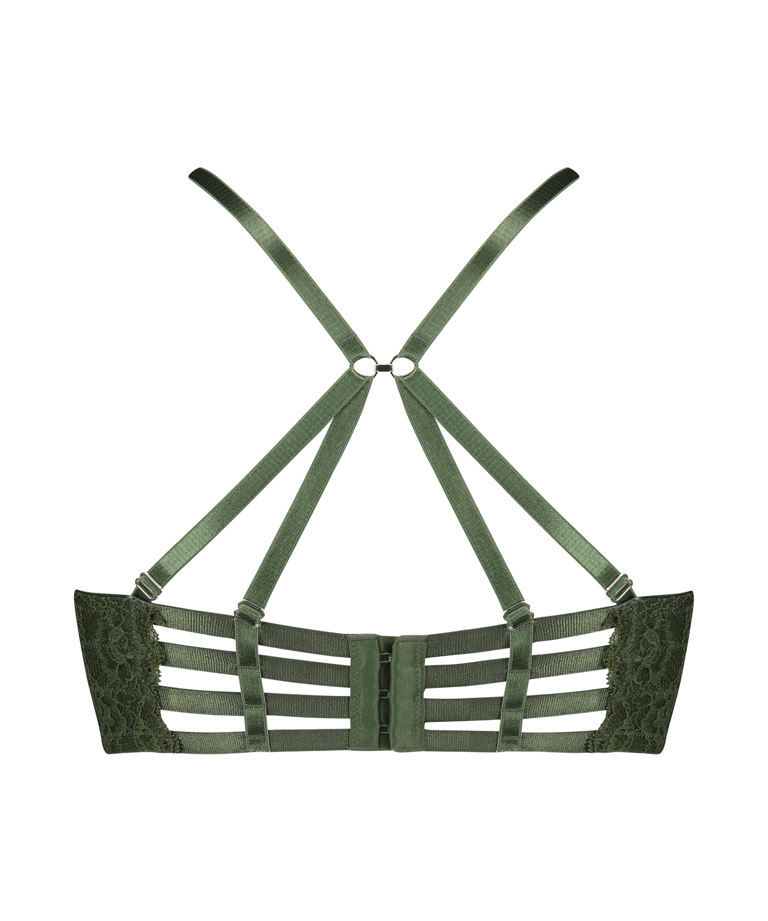 ¡Experimenta la sensación única de este sujetador tan ideal! Está preformado y tiene aros que ofrecen una buena sujeción. Tiene un bonito borde de encaje a lo largo de las copas y cuenta con un poco más de espacio entre ellas. ¡Combínalo con la braguita a
