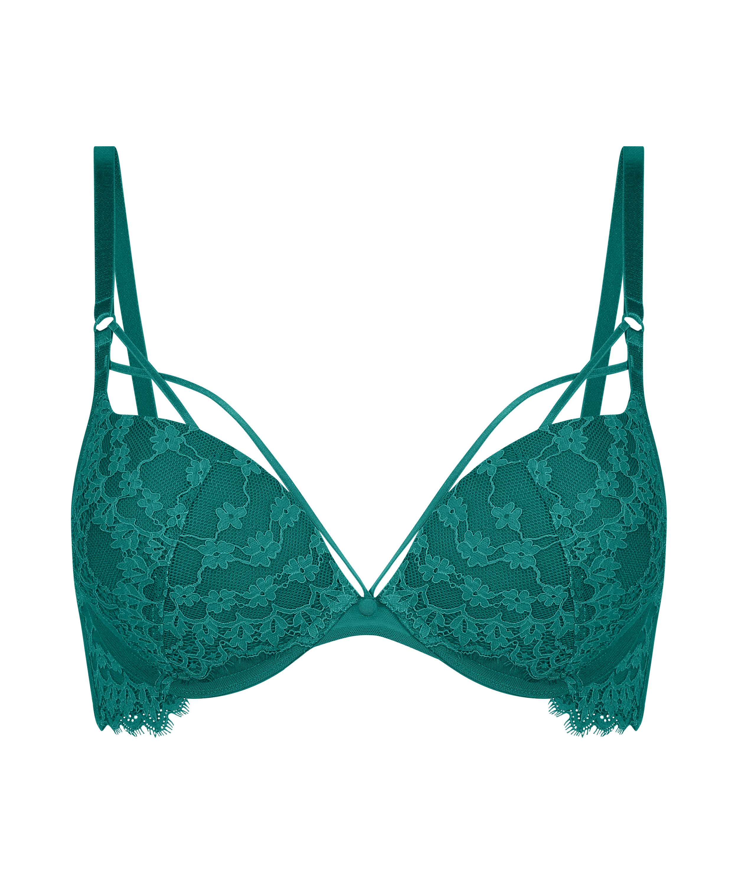 ¡Este cómodo sujetador maximizador es tu nuevo mejor amigo! Con divertidos detalles de tiras sobre los senos, combinados con copas con aros para un ajuste cómodo. Está acabado con detalles de encaje. ¡Se puede combinar con las braguitas a juego!