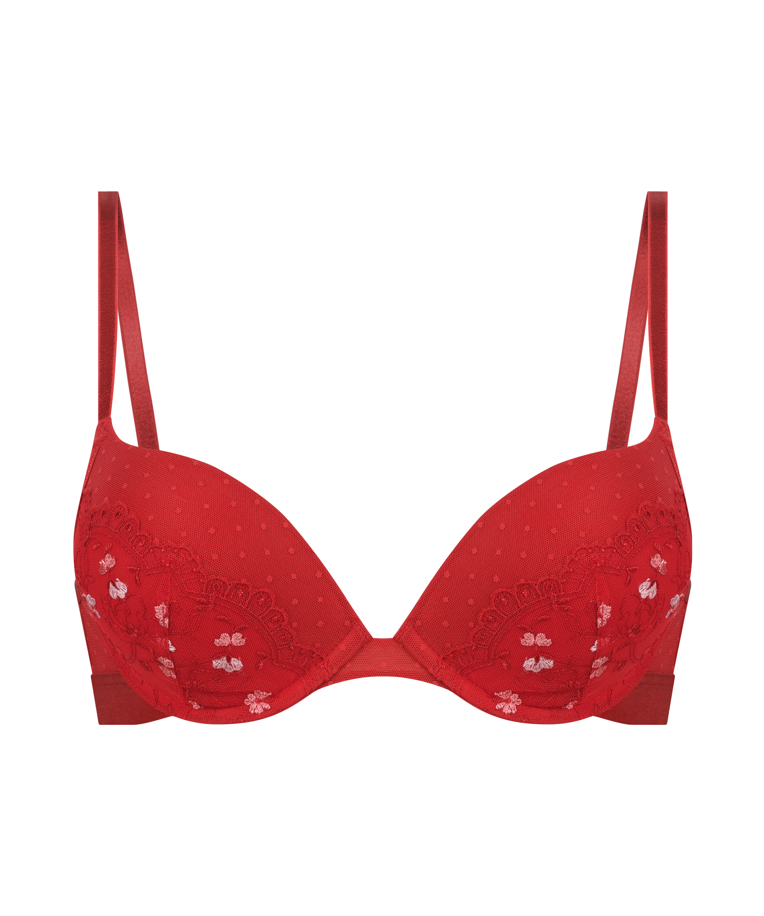 ¡Ponte sexy con este precioso sujetador maximizador! Con un montón de encaje romántico y bonitos bordados por todas partes. ¡Encuentra las bragas a juego para completar el conjunto!