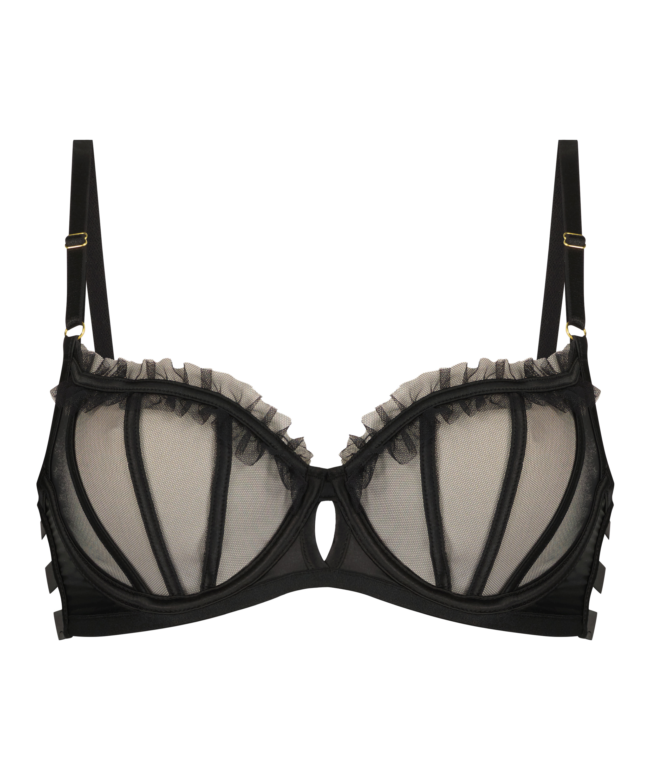 ¡Un sujetador bonito y sexi! El sujetador Courtney es un sujetador sencillo y delicado de malla fina con detalles de volantes que aportan definición y forma a la prenda. Los tirantes son ajustables para un ajuste y una sensación perfectos. Combínalo con prendas a juego de la colección Private para completar tu look.