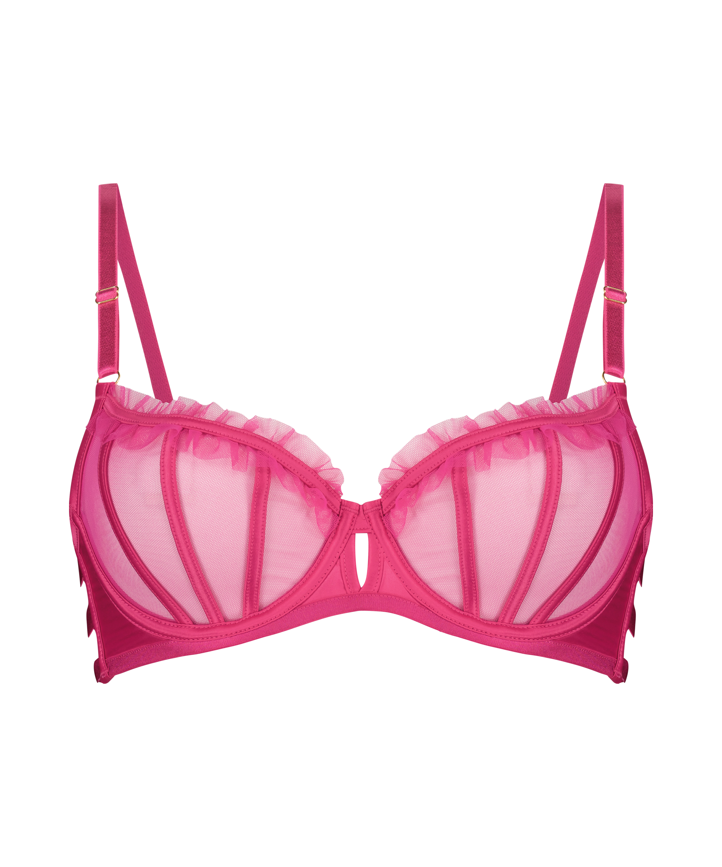 ¡Un sujetador bonito y sexi! El sujetador Courtney es un sujetador sencillo y delicado de malla fina con detalles de volantes que aportan definición y forma a la prenda. Los tirantes son ajustables para un ajuste y una sensación perfectos. Combínalo con prendas a juego de la colección Private para completar tu look.
