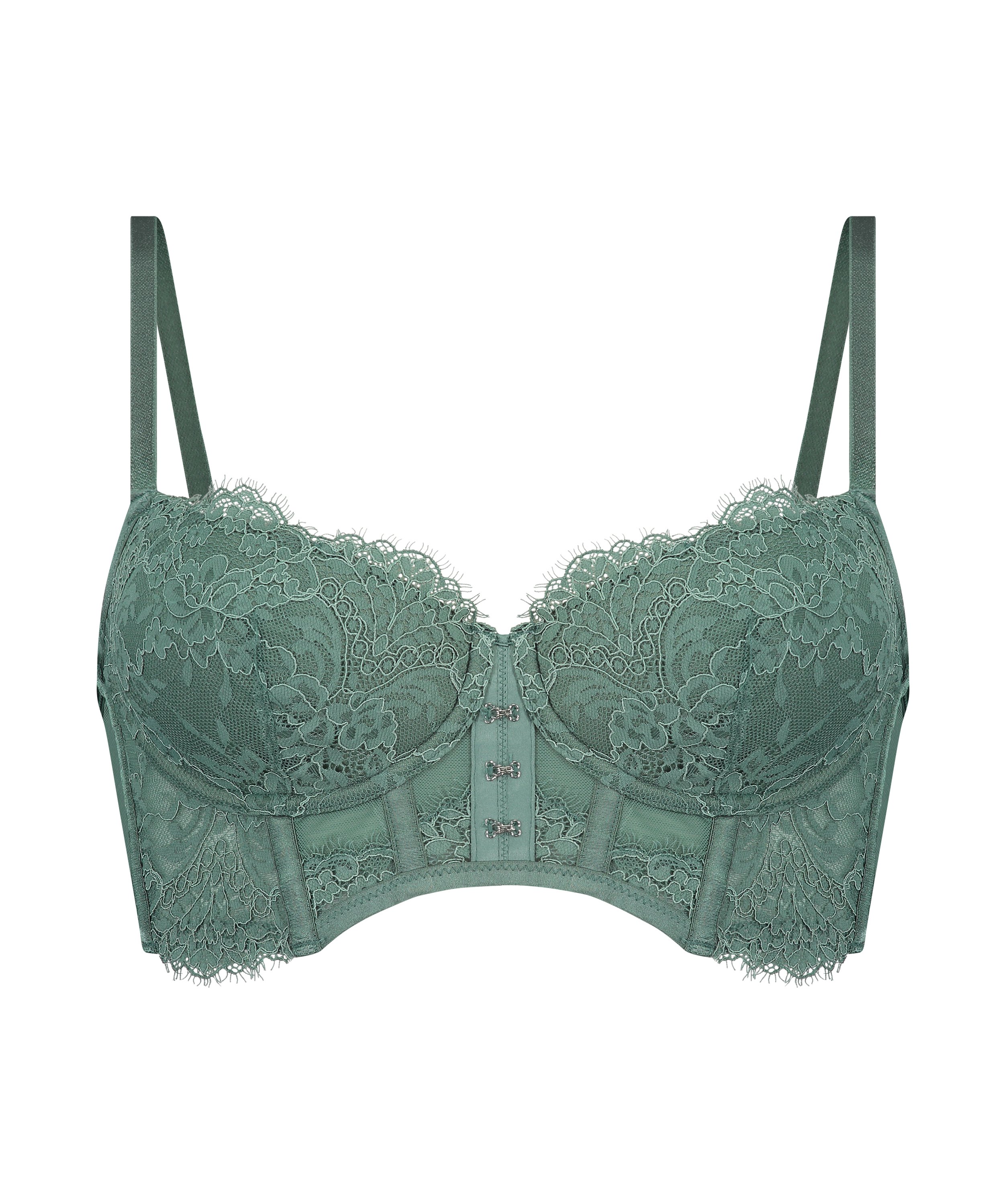Siéntete fabulosa con este precioso sujetador de aros largos con detalles de encaje. La forma con apoyo «longline» y los tirantes ajustables te harán sentir cómoda durante todo el día. ¡Llévalo con tus piezas favoritas del conjunto Bella para darle a tu cajón de lencería esa actualización que estaba esperando!