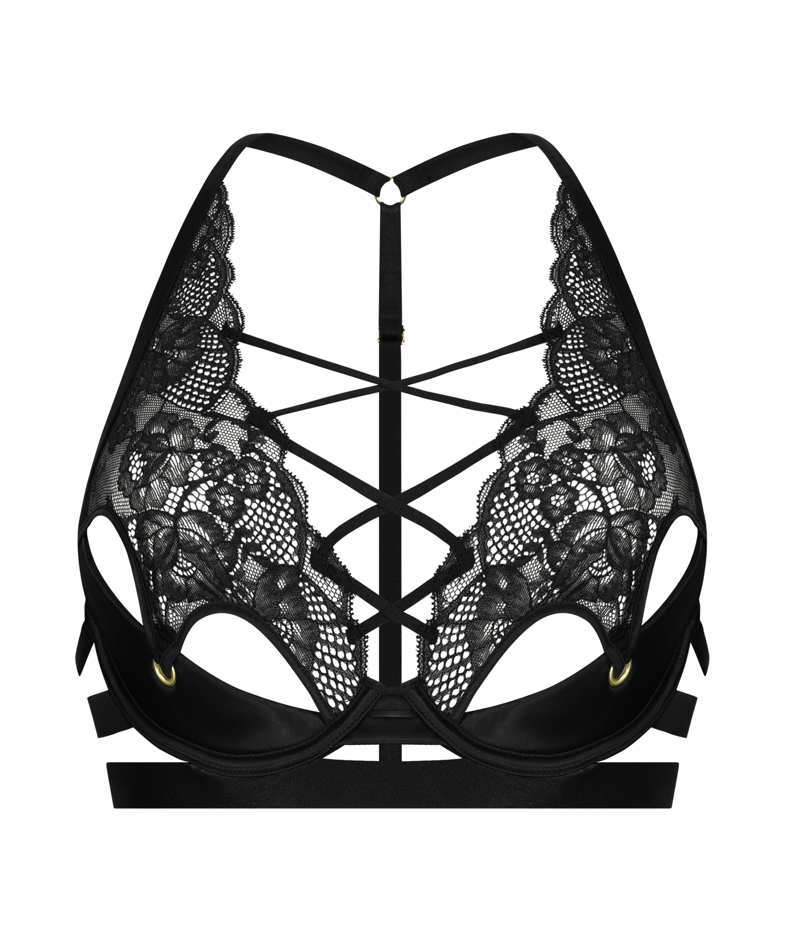 ¡Noche de pasión con este sujetador! Tiene encaje, detalles de tirantes y tiene partes semitransparentes. Combínalo con los artículos que hacen juego. Forma parte de la colección Private.