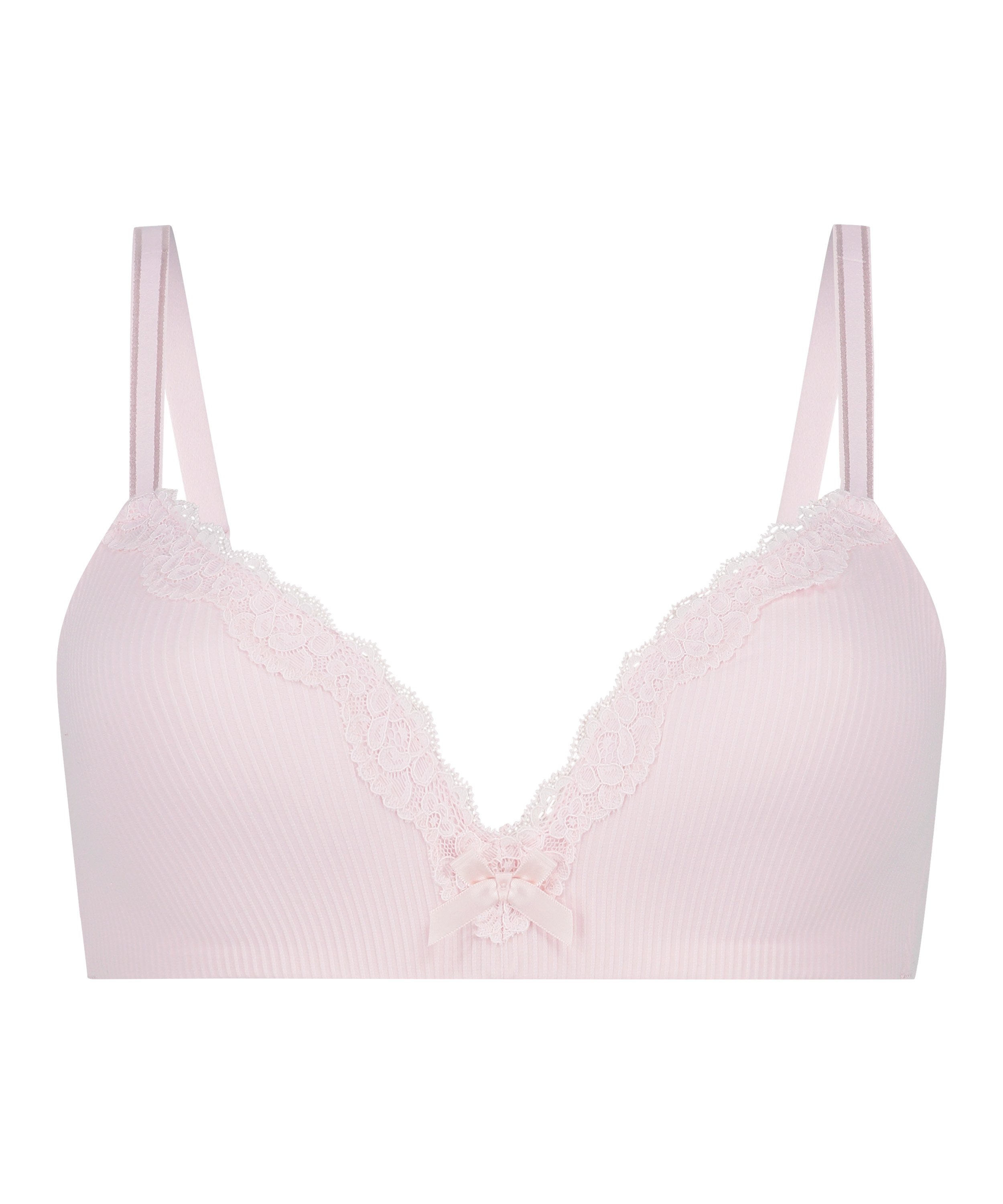 Un bonito sujetador con un bonito ribete de encaje y un bonito lazo en la parte delantera. El sujetador está preformado y no tiene aros. Combina con una braguita a juego.