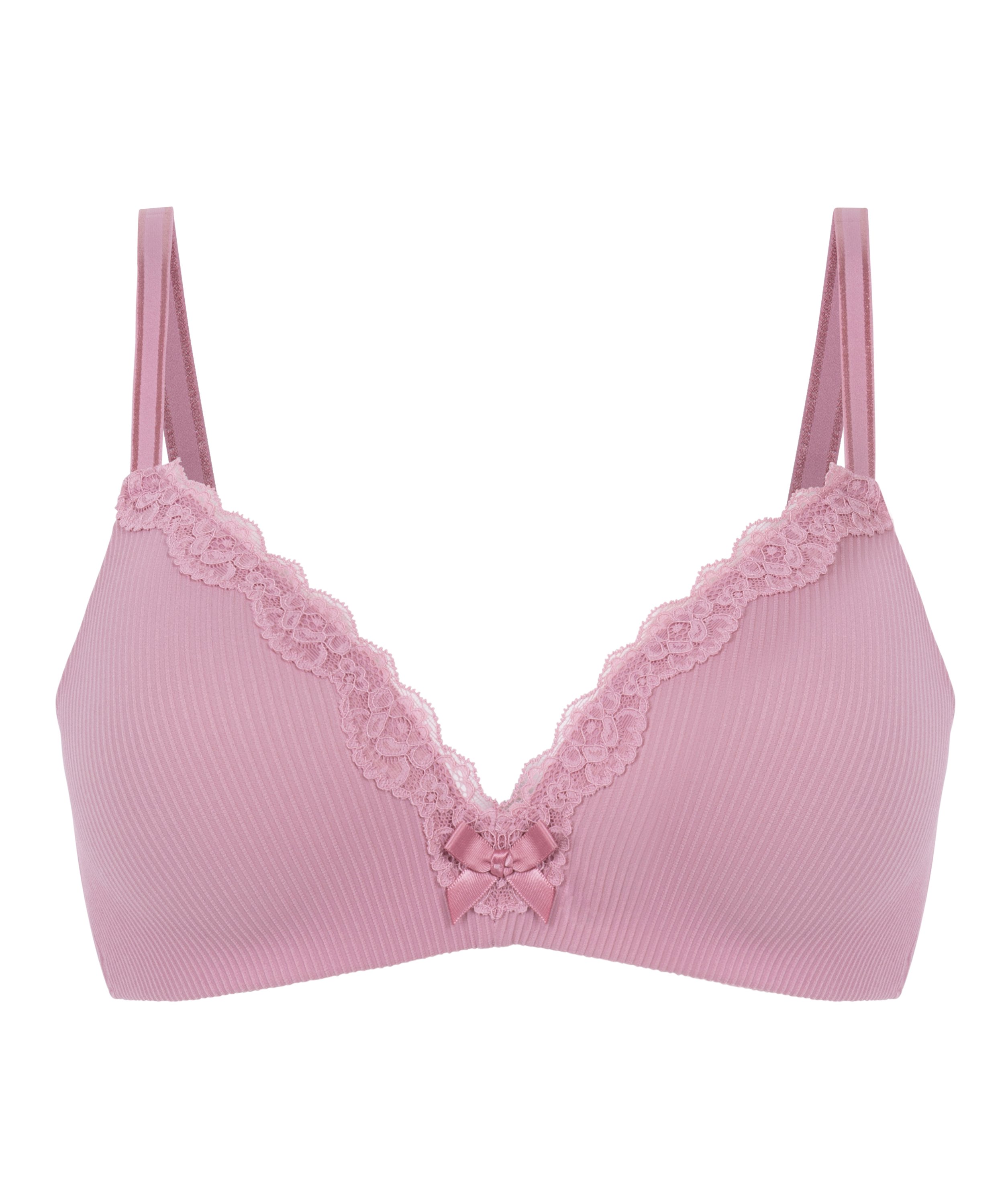 Un bonito sujetador con un bonito ribete de encaje y un bonito lazo en la parte delantera. El sujetador está preformado y no tiene aros. Combina con una braguita a juego.