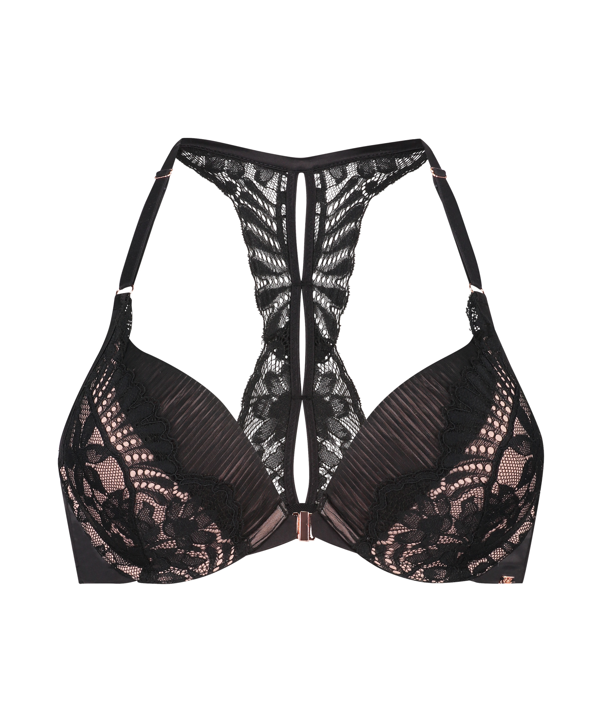 Aumenta tu confianza con este bonito sujetador. Este sujetador tiene una bonita espalda abierta y unas copas de caída perfecta. Está cubierto de detalles recortados con cordones para realzar su belleza. Los aros proporcionan sujeción y los tirantes ajustables garantizan un ajuste perfecto. Cierre frontal para facilitar su colocación. Este sujetador forma parte de la colección Noir y puede combinarse con braguitas a juego.