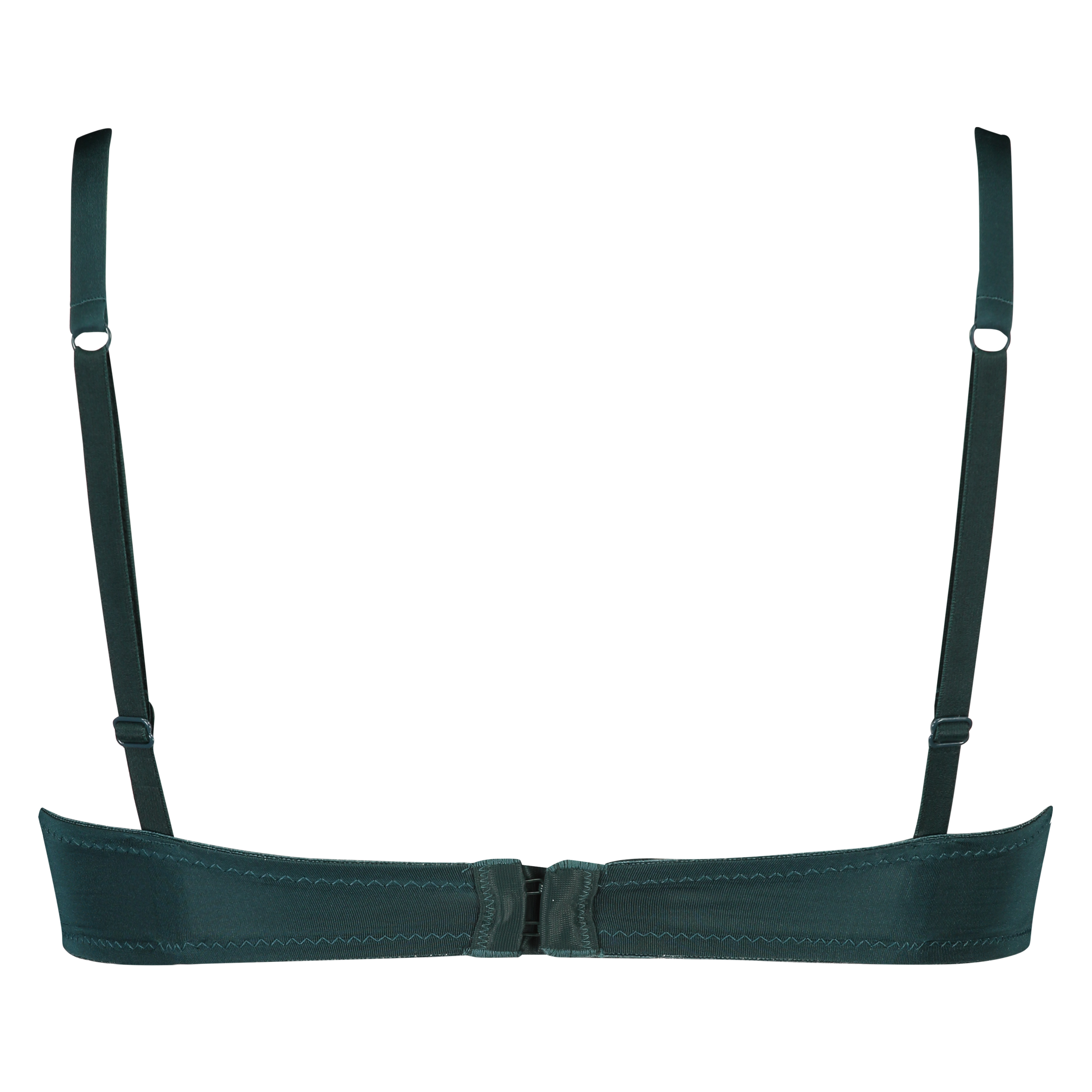Este sujetador push up está hecho de un tejido liso tanto en la parte superior de las copas como alrededor las mismas, combinado con un tejido de rejilla que cubre las copas y que cuenta con un diseño a rayas.