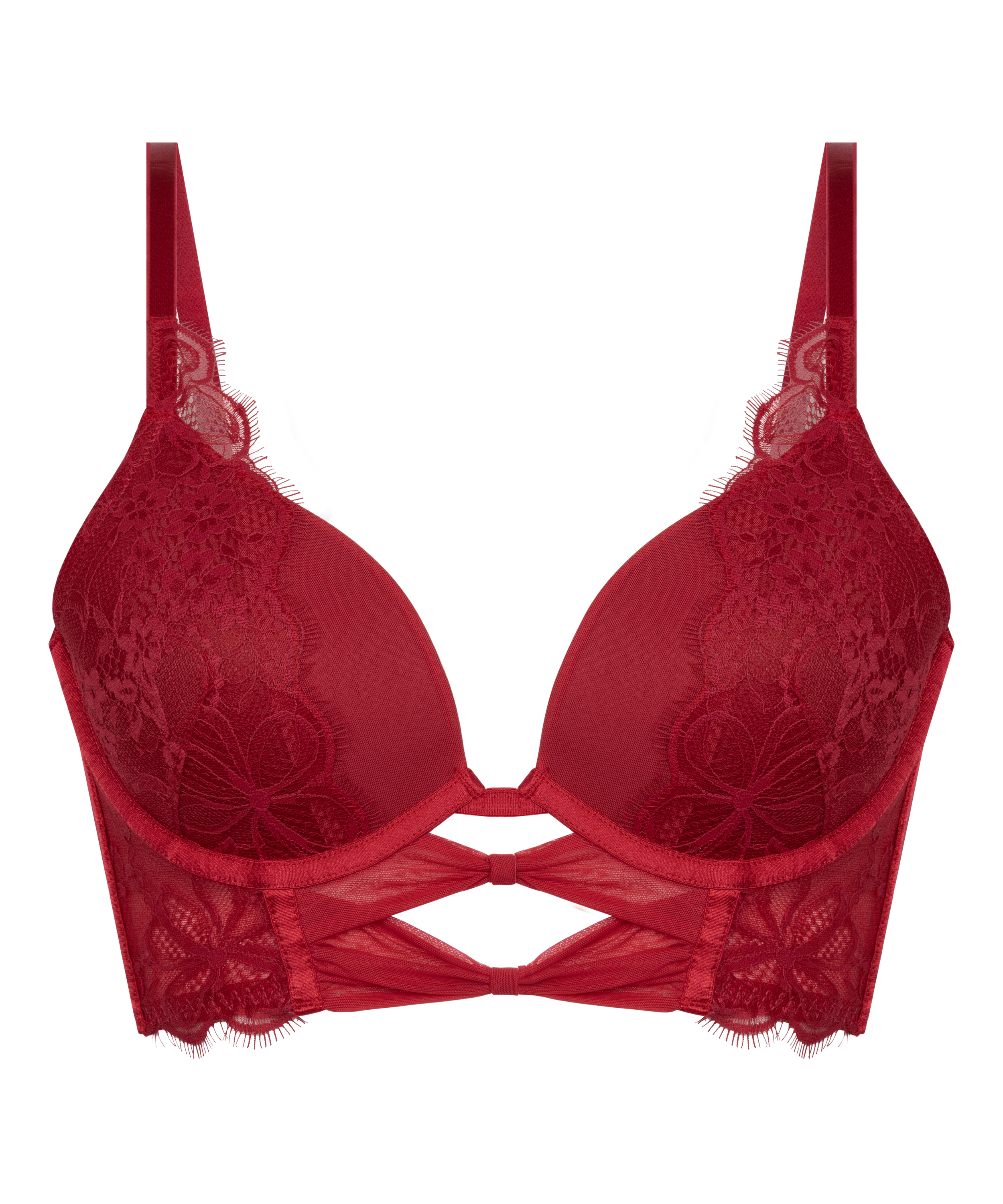 Romántico y de gran sujeción, este sujetador con aros y relleno se ha diseñado para realzar tu silueta natural con un toque femenino. Con delicados detalles de encaje en las copas y una suave cinturilla bajo el busto, rematada con un dulce lazo. Las correas ajustables garantizan un ajuste perfecto para una mayor comodidad durante todo el día. La mezcla ideal de elegancia y uso diario. Un encantador básico para tu cajón de lencería.