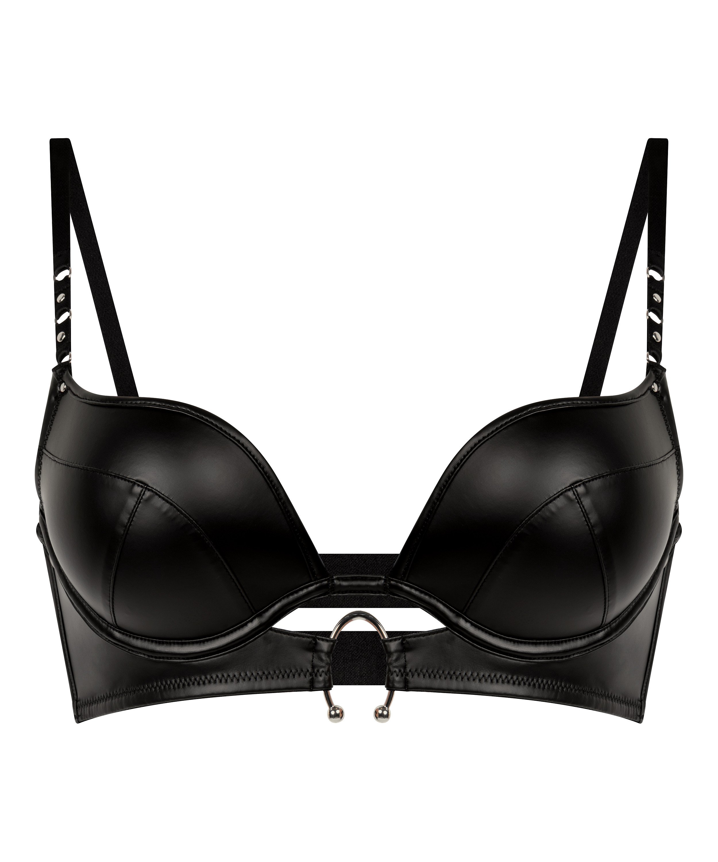 Hazte dueña de tu poder con nuestro sujetador Zelda, donde lo feroz se une a lo impecable. Diseñado para realzar, dar forma y llamar la atención, este sujetador plunge preformado incorpora piel sintética en toda su superficie para un look elegante y de gran impacto. Las copas con aros ofrecen una sujeción estructurada, mientras que el escote profundo realza sus curvas naturales para una silueta atrevida y segura. Se puede combinar con la braguita a juego para lucir un look completo.