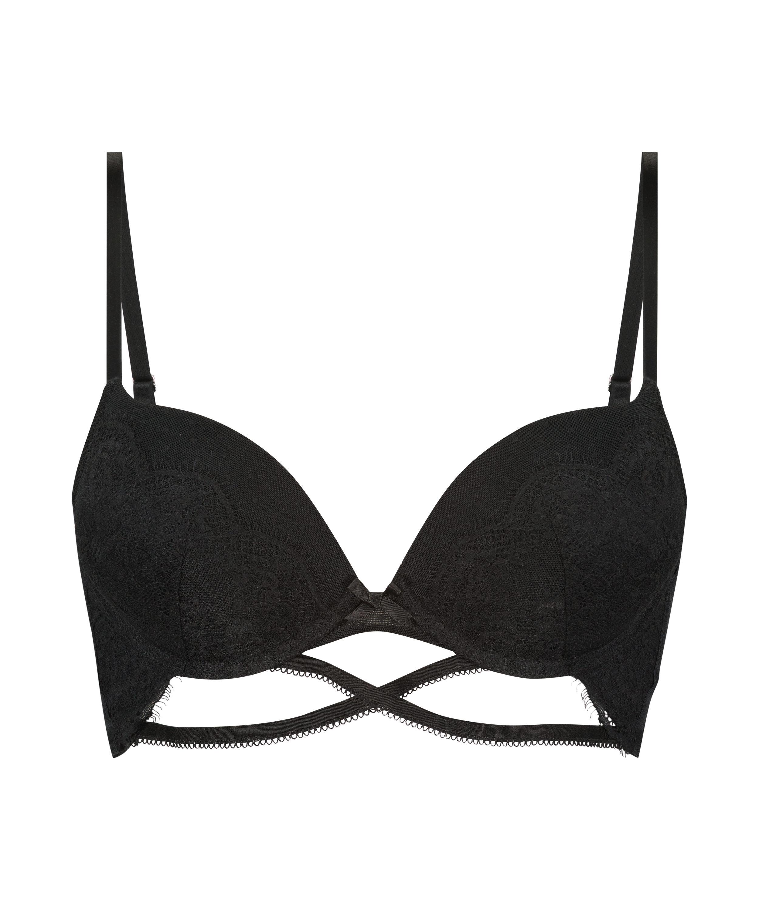 ¡Este sujetador parece confeccionado especialmente para ti! Realza el pecho y es de lo más sensual. Además tiene un bonito encaje y un lazo muy tierno. Combínalo con los artículos a juego para obtener un conjunto completo.