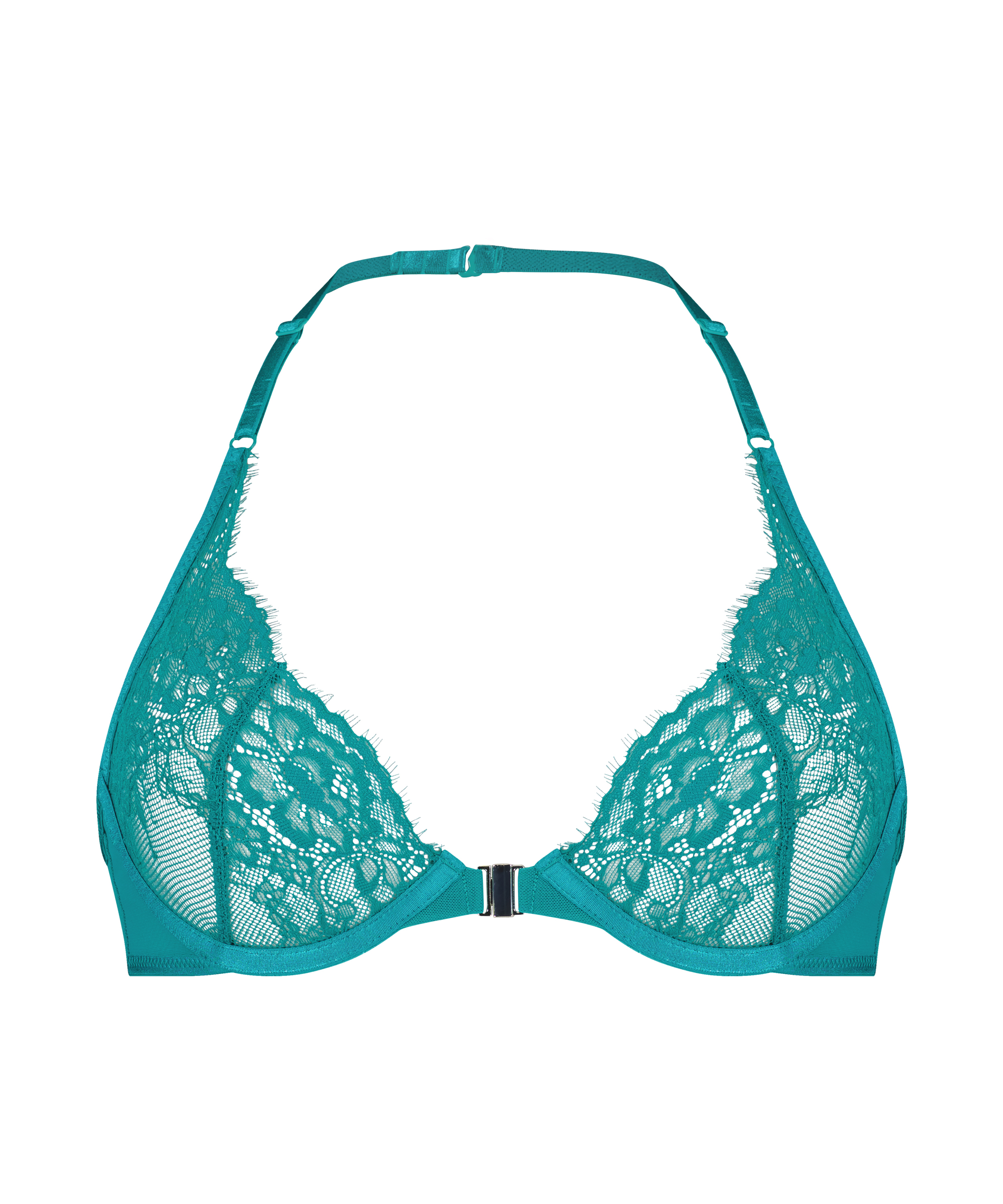 ¡Este sujetador te hará sentir increíble! No tiene relleno y tiene un cierre en la parte delantera. Está completamente cubierto de encaje y tiene una cadena dorada en forma de corazón super bonita que adorna la espalda. Combínalo con sus prendas a juego. Forma parte de nuestra colección P.O.P Power Of Positivity. POP: una actitud inspiradora y enérgica de «pensar en positivo». Power Of Positivity habla de autoestima, diversidad y estilo de vida consciente.