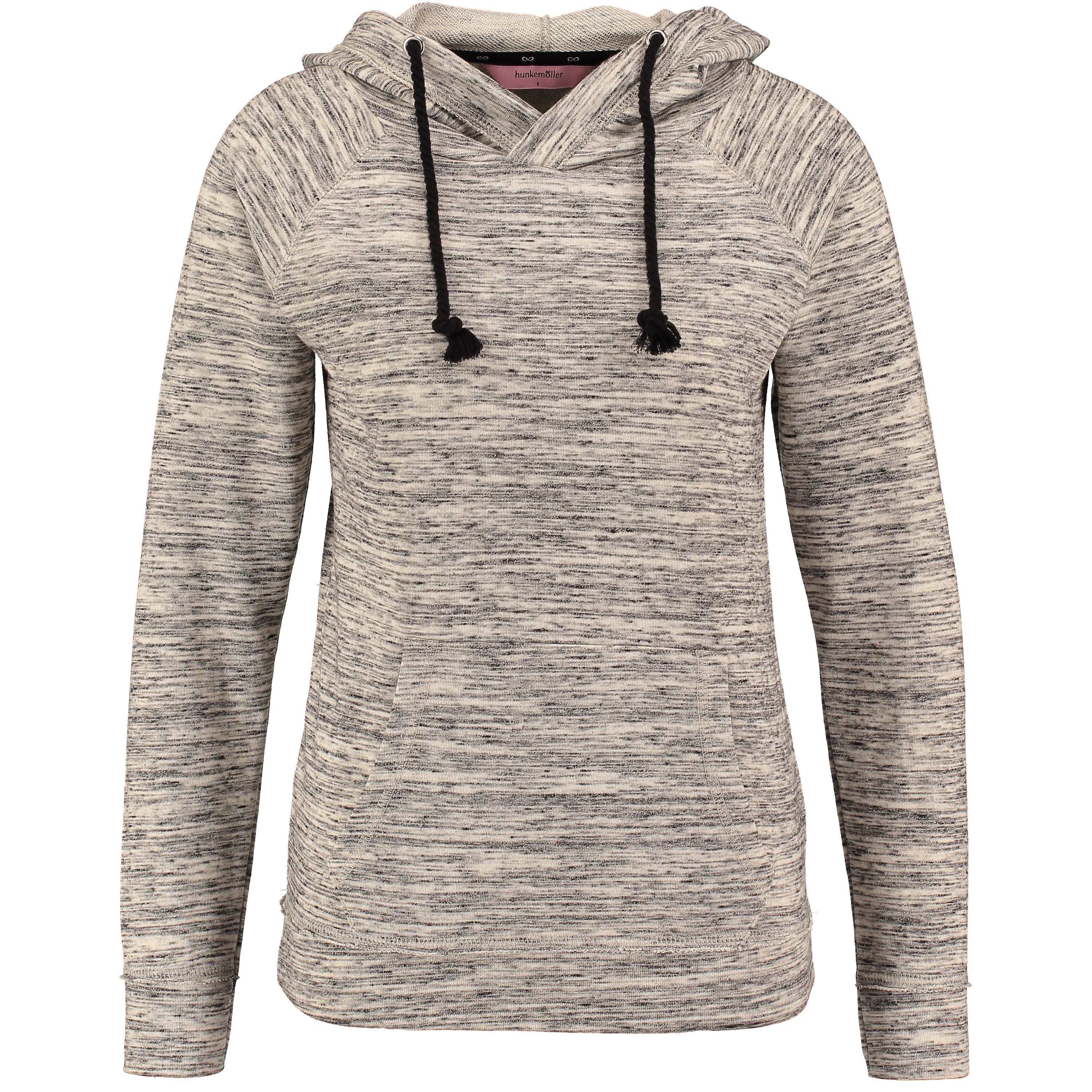 This sweater is lovely and comfortable to wear over your pyjamas. The sweater is made from grey fabric and has a hood.
