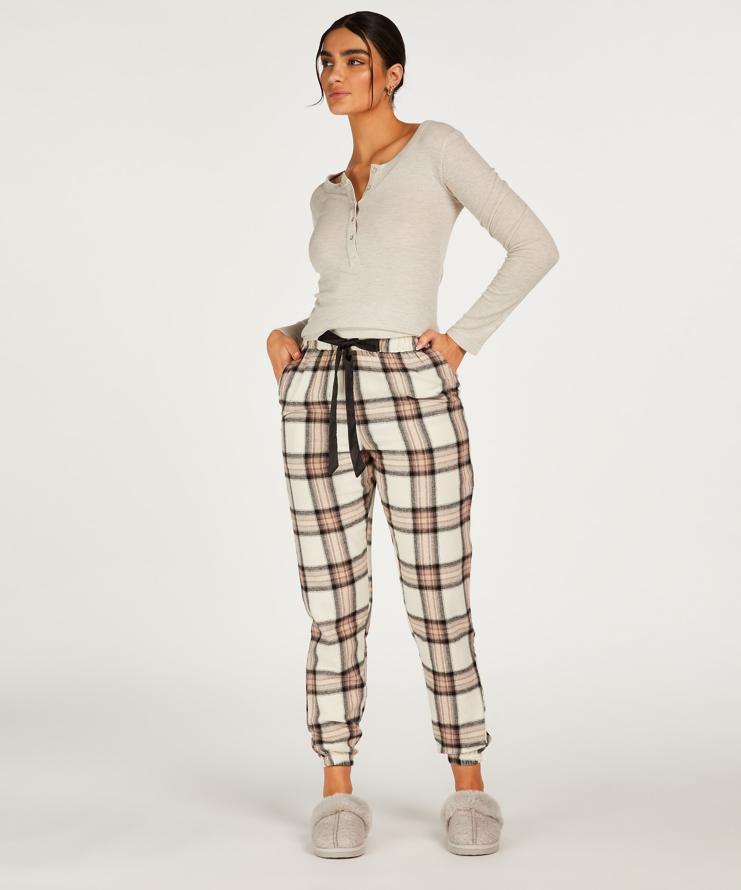 ¡Siente la comodidad en este pantalón de pijama! Tiene estampado de cuadros, bolsillos laterales y cintura elástica para un buen ajuste. Las piernas también son anchas, para que sea extracómodo. ¡Combínalo con el top a juego para completar tu look! Este pantalón es 9 centímetros más largo que el modelo normal y tiene un ajuste alto. Por eso es perfecto para mujeres que miden más de 1,75 m.