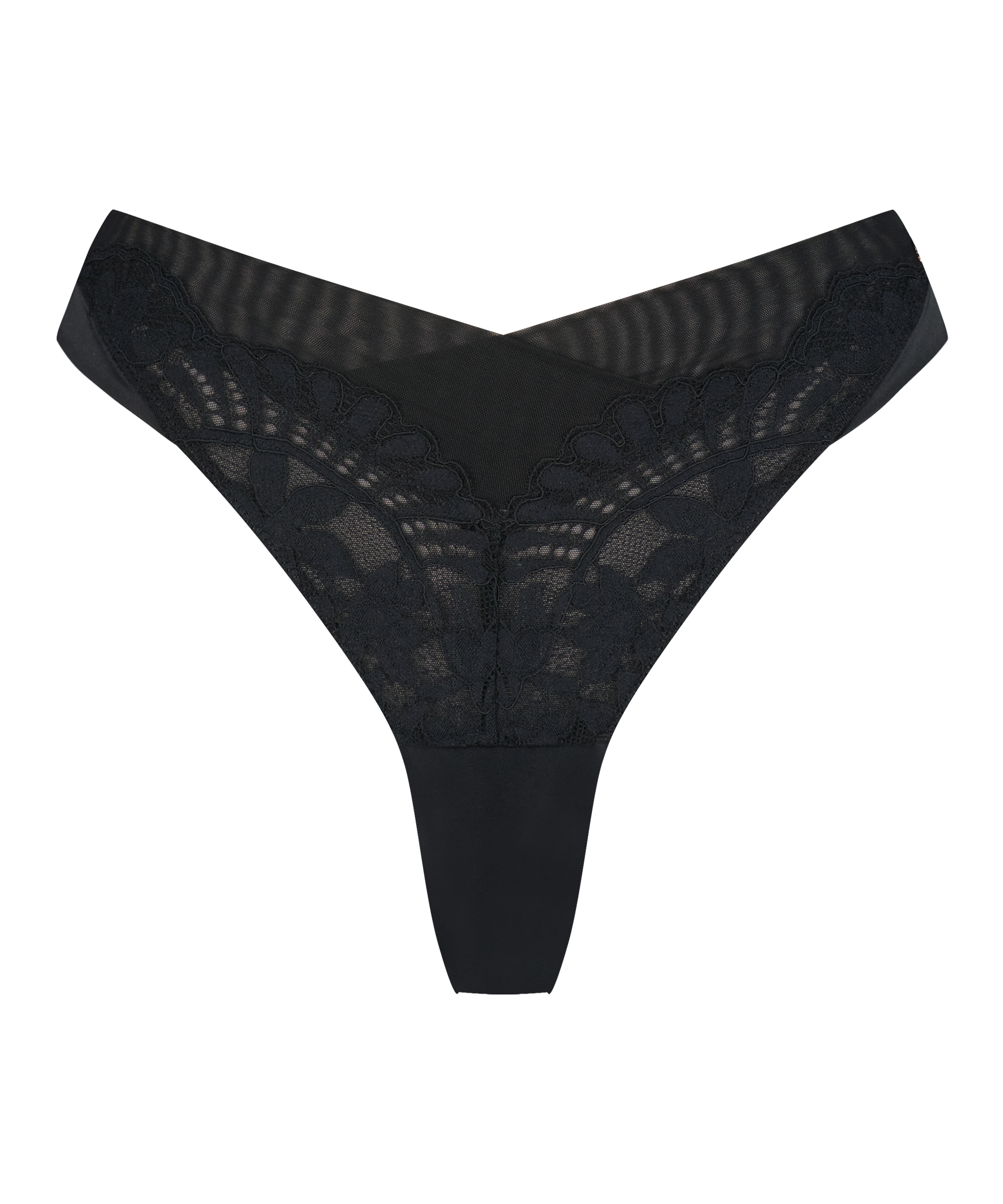 ¿Tú también te has enamorado de este tanga? Tiene detalles de encaje y malla en toda la prenda, ¡ideal! ¡Combínalo con artículos a juego de la colección Noir para lucir un conjunto de lencería completo!