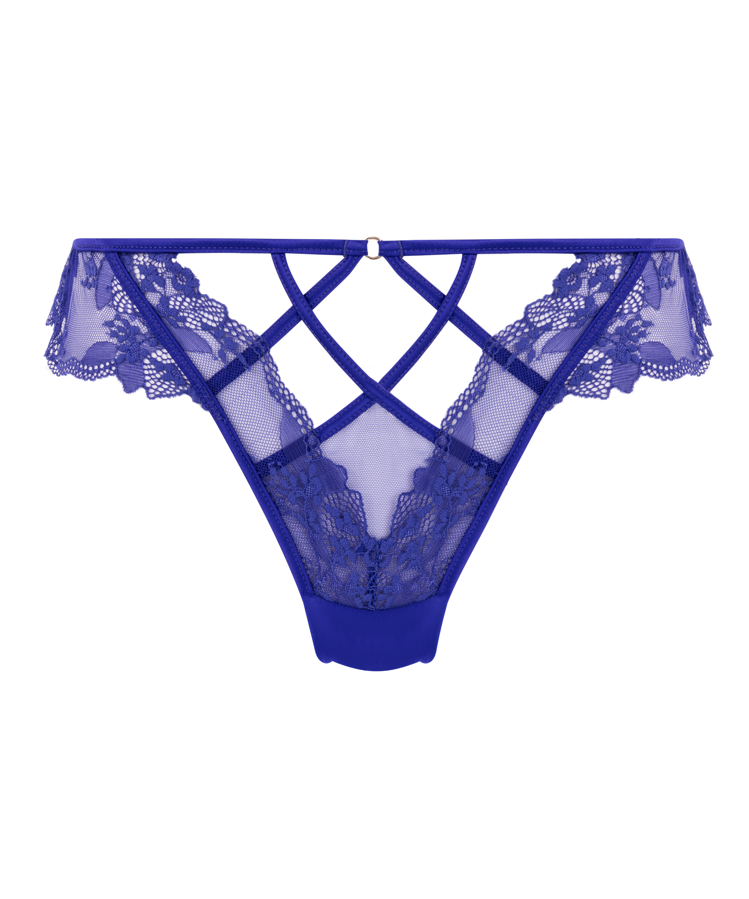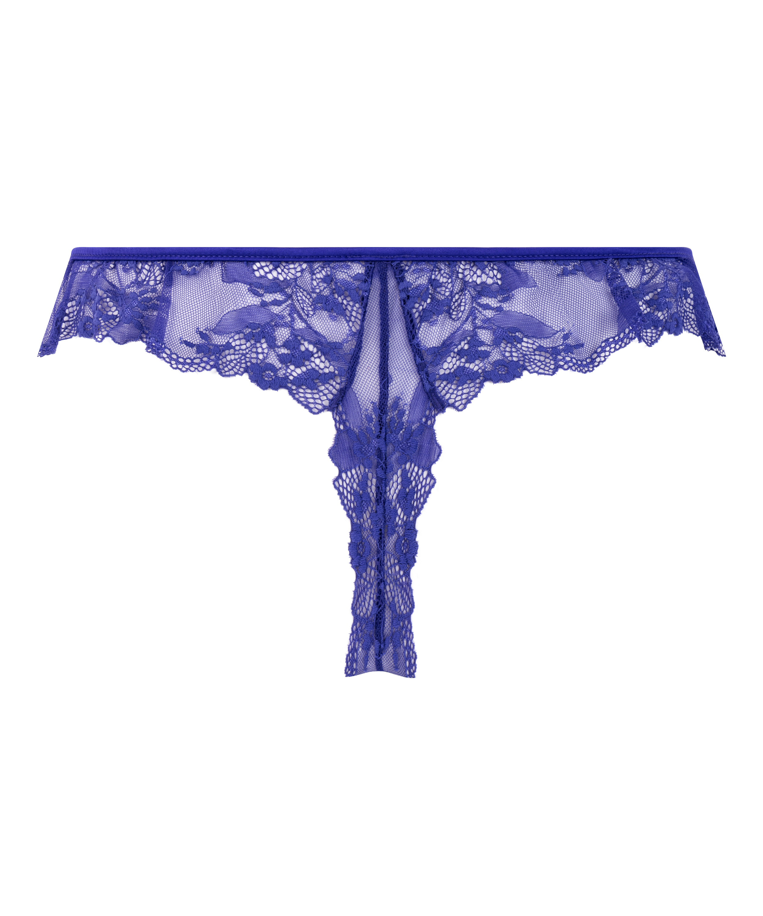¡Este tanga desentierra tus deseos más profundos! Te ofrece unos bonitos detalles de encaje y cintas.