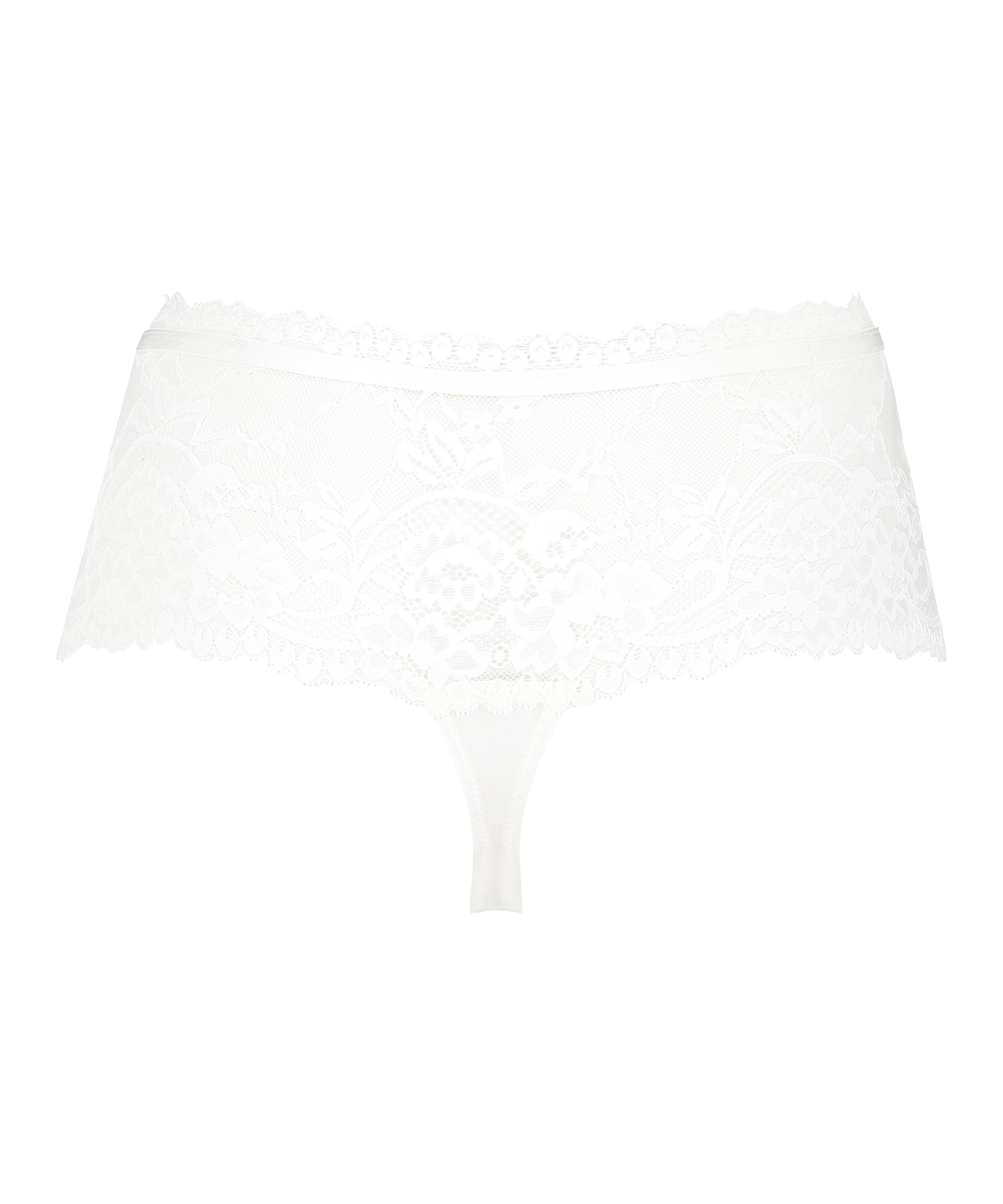 ¡Siéntete sexi con este tanga bóxer! Está hecho casi por completo de encaje y tiene un tierno lazo en la parte delantera. Este tanga bóxer también es un poco más alto, lo que resulta muy agradable. ¡Este tanga bóxer es fácil de combinar con un sujetador a juego de nuestra colección!