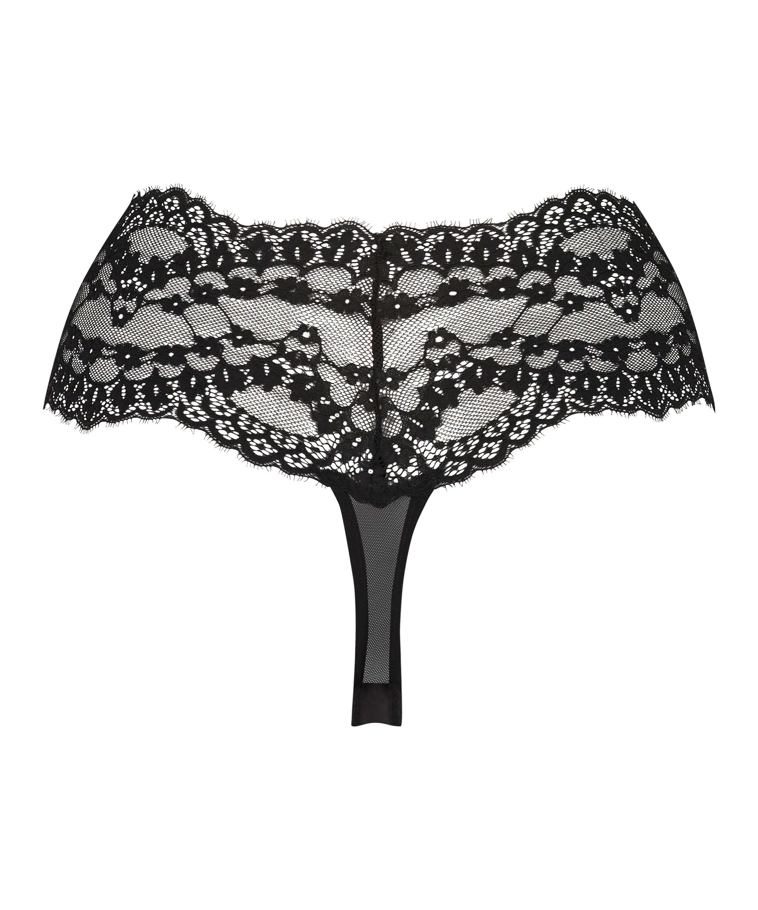 ¿A ti también te encanta este tanga boxer? Contiene mucho encaje en la parte superior y también unos bonitos detalles de malla. ¡Combínalo con los artículos a juego para completar tu conjunto!