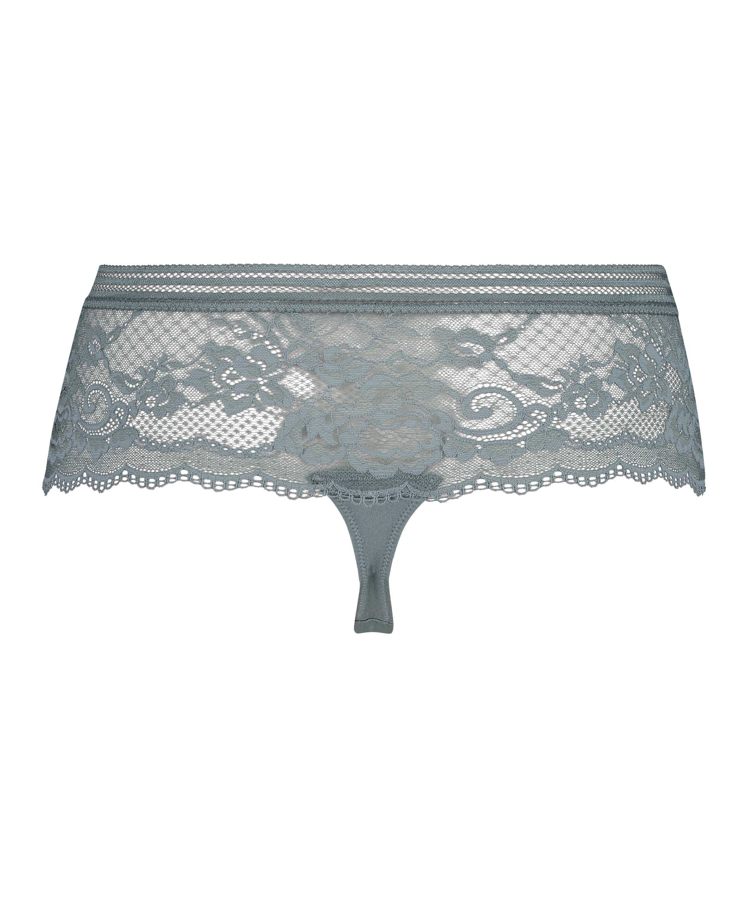 Este precioso tanga tipo bóxer tiene encaje con un patrón muy elegante. La braguita tiene un ajuste de cintura alta. Combínala con un sujetador o bralette a juego para completar tu conjunto.