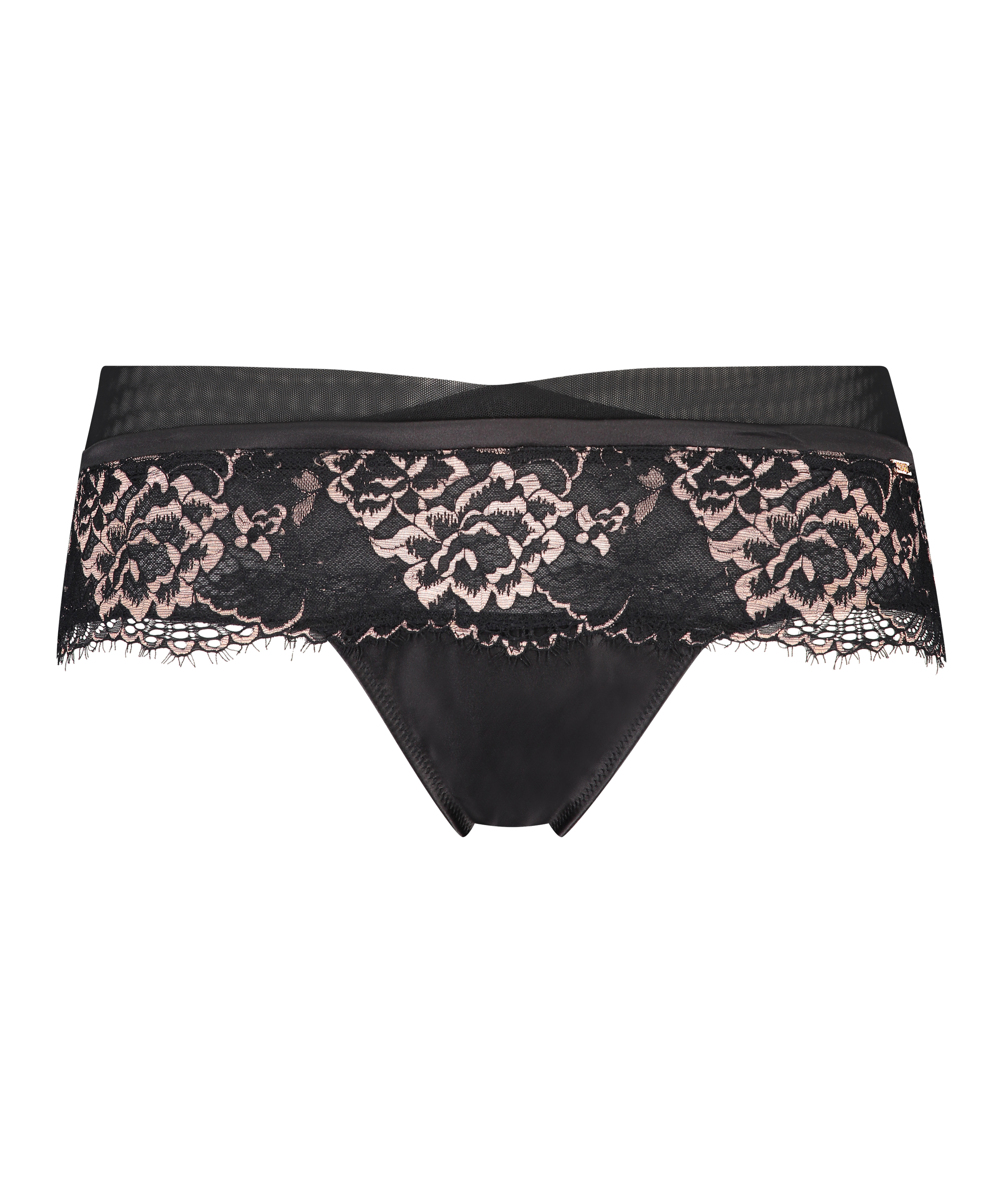 ¡Este tanga bóxer es espectacular! Tiene cintura alta y está rematada con muchos detalles de malla y encaje brillantes. Combínalo con una de la prendas a conjunto y completa tu look.