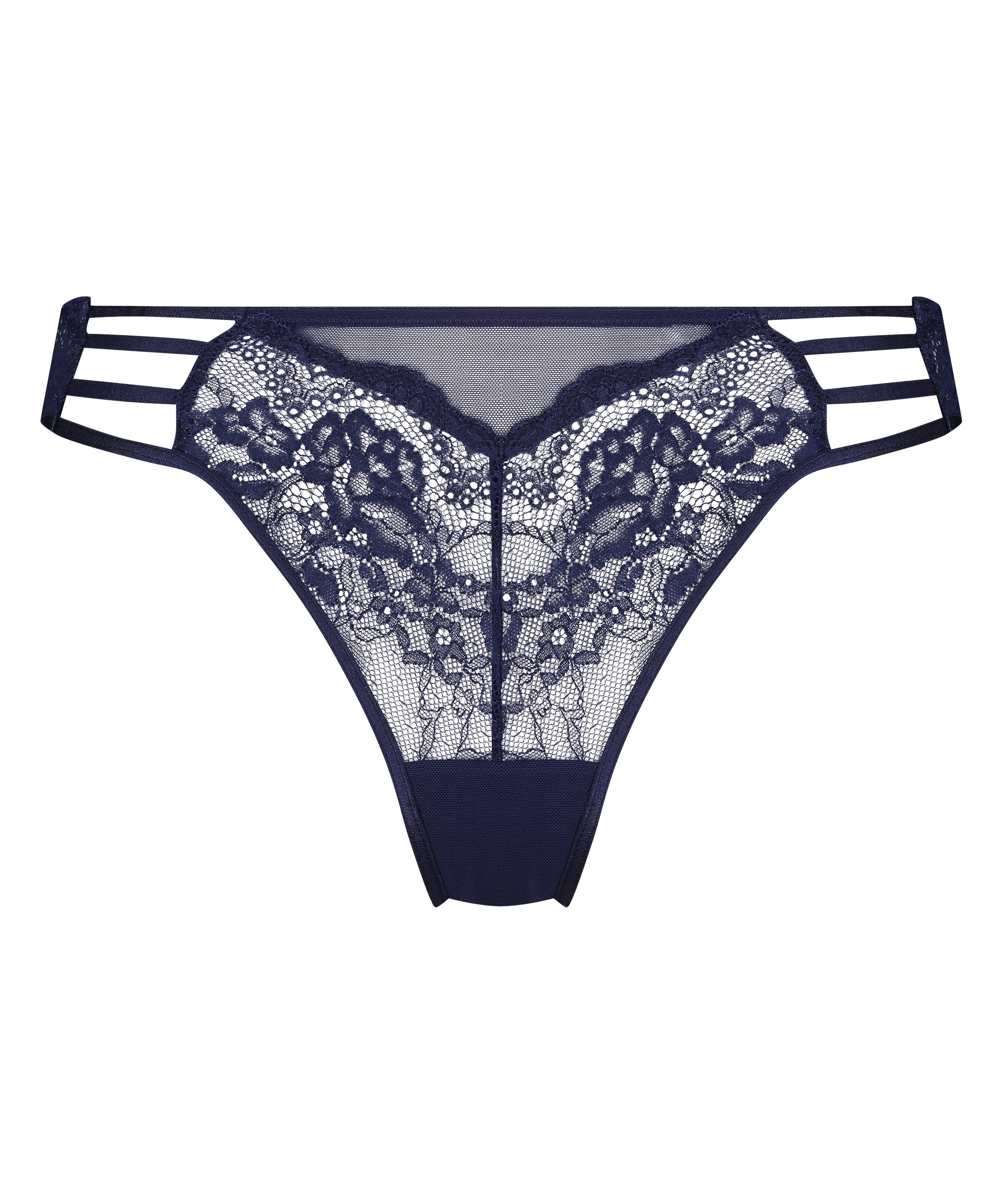 ¡Este tanga no puede faltar entre tus prendas! Tiene encaje en la parte delantera y malla en la parte trasera. ¡Combínalo con tu sujetador favorito en el mismo color!
