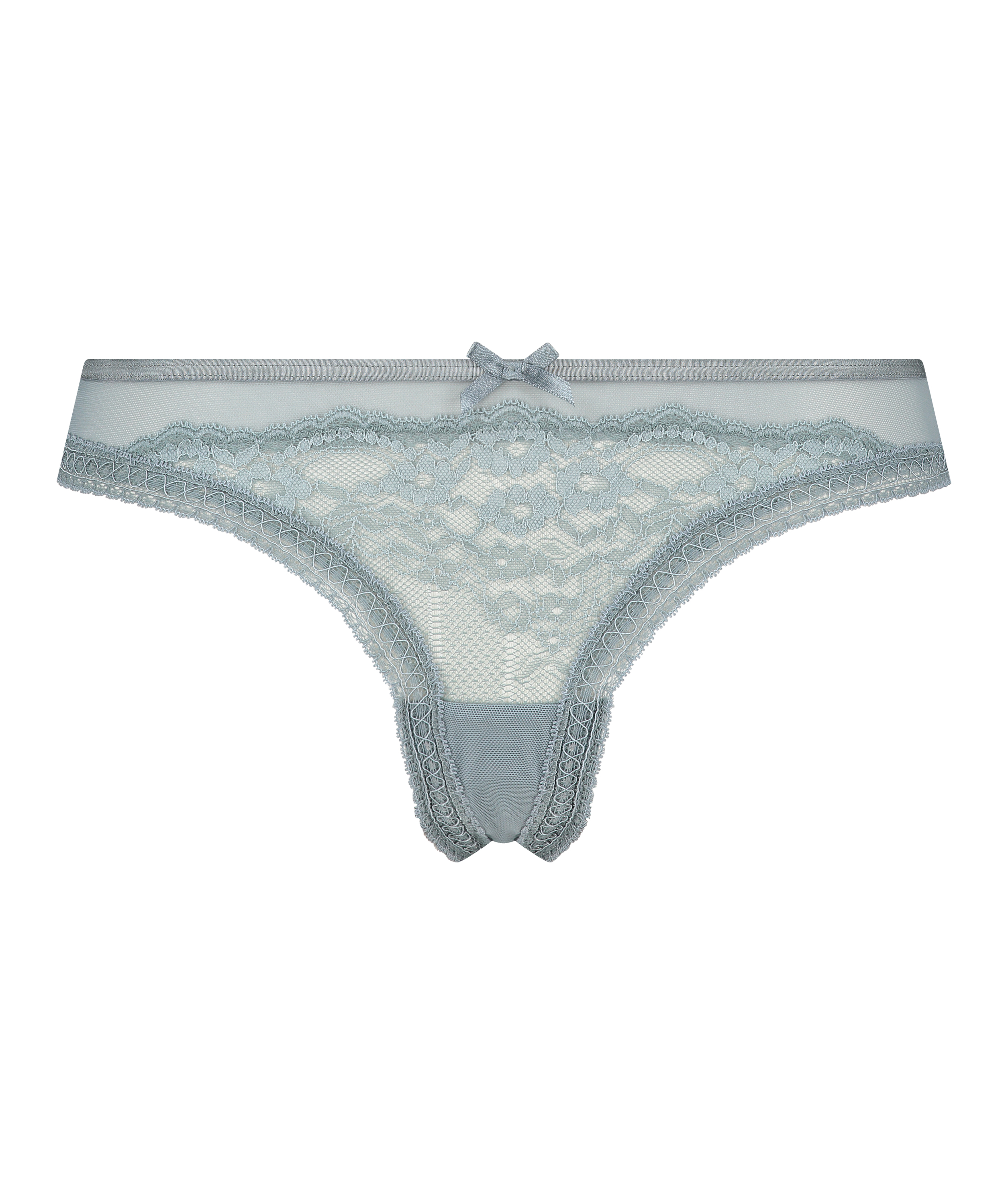 ¡Con este tanga estás muy sexi! El tanga tiene un acabado de encaje y rejilla y tiene un lazo en la parte delantera. Combina este tanga con el sujetador a juego para completar tu conjunto.