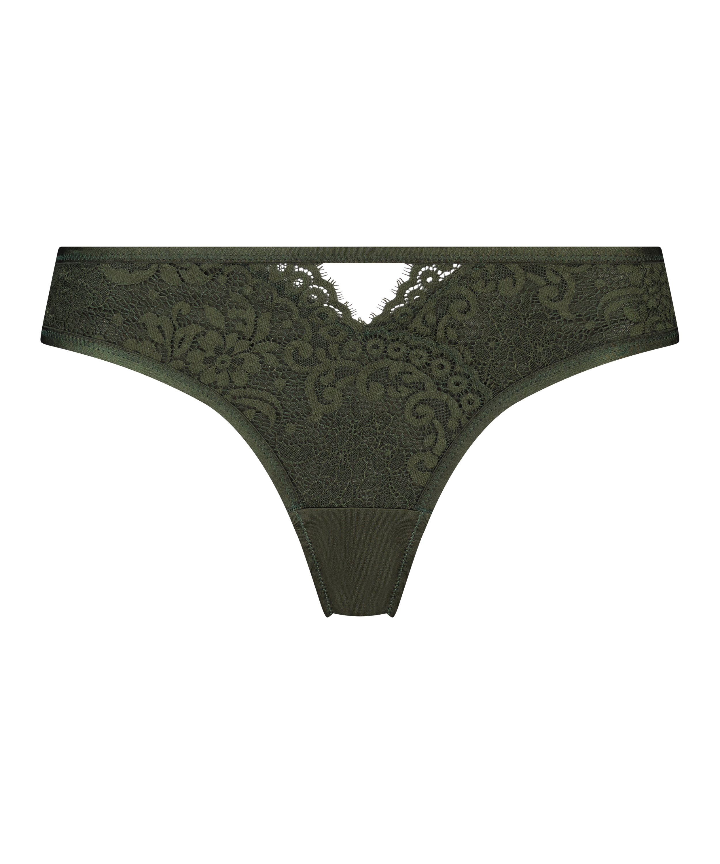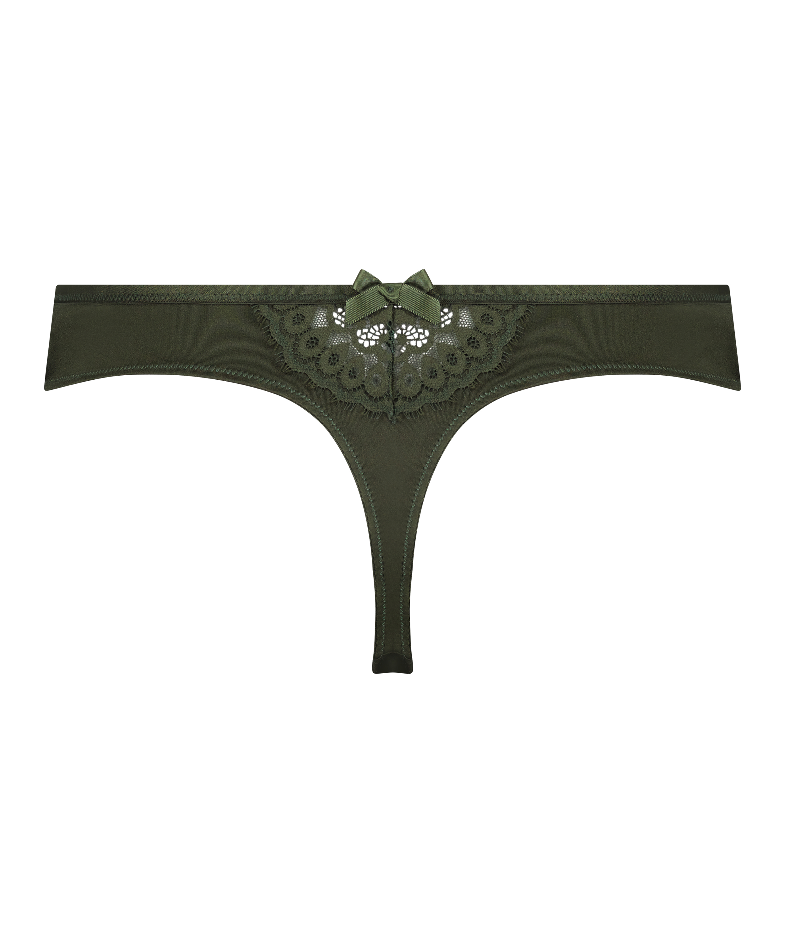 Completa tu conjunto con este tanga. Está hecho de encaje y tiene un lazo en la parte posterior. Combínalo con el sujetador a juego para un conjunto completo.