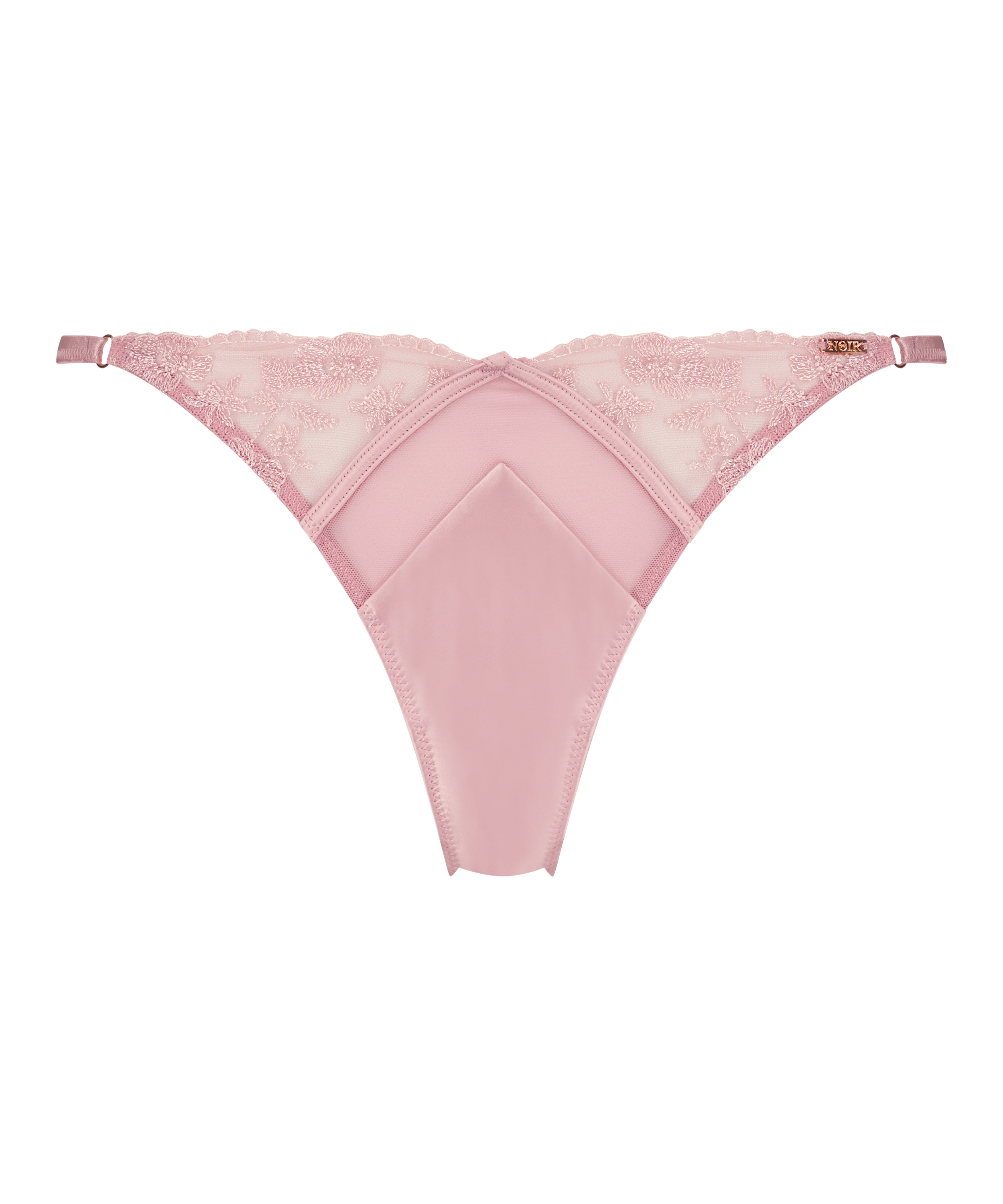 Este elegante tanga es un auténtico must-have. La braguita incluye un precioso encaje de aspecto satinado. Combínalo con los artículos a juego. Estas braguitas forman parte de la colección Noir.
