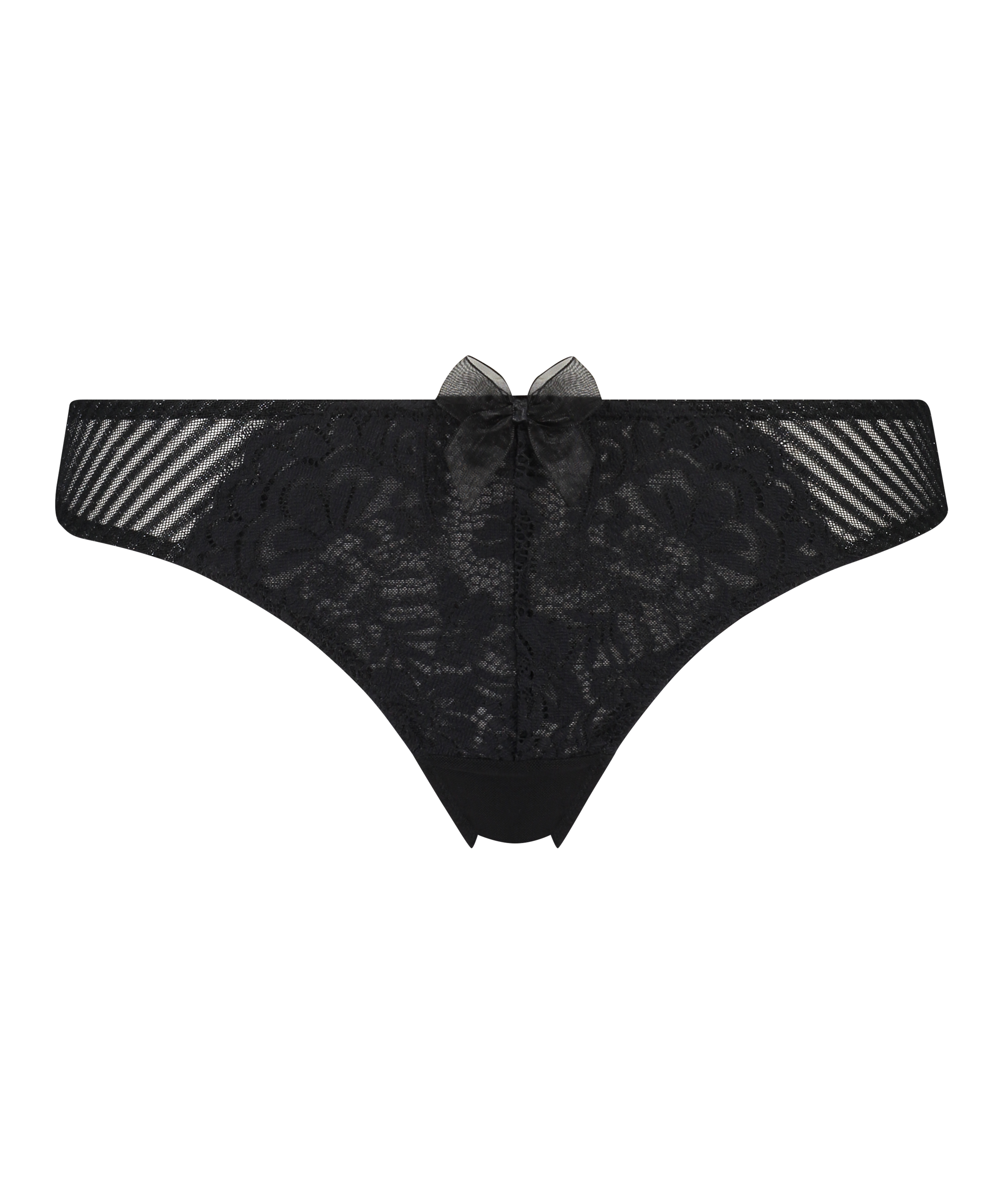 Este bonito tanga tiene un acabado de encaje y una franja brillante. Combínalo con una de la prendas a conjunto y completa tu look.