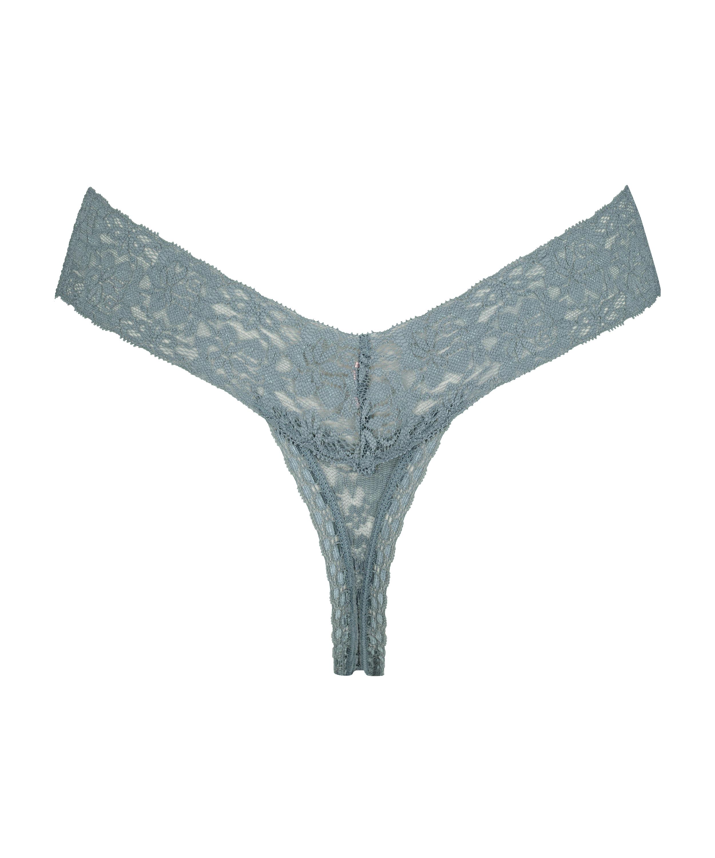 ¡Únete a la obsesión por el encaje! Este tanga en forma de V y de corte ultra bajo está hecho de encaje con un lacito de acabado.