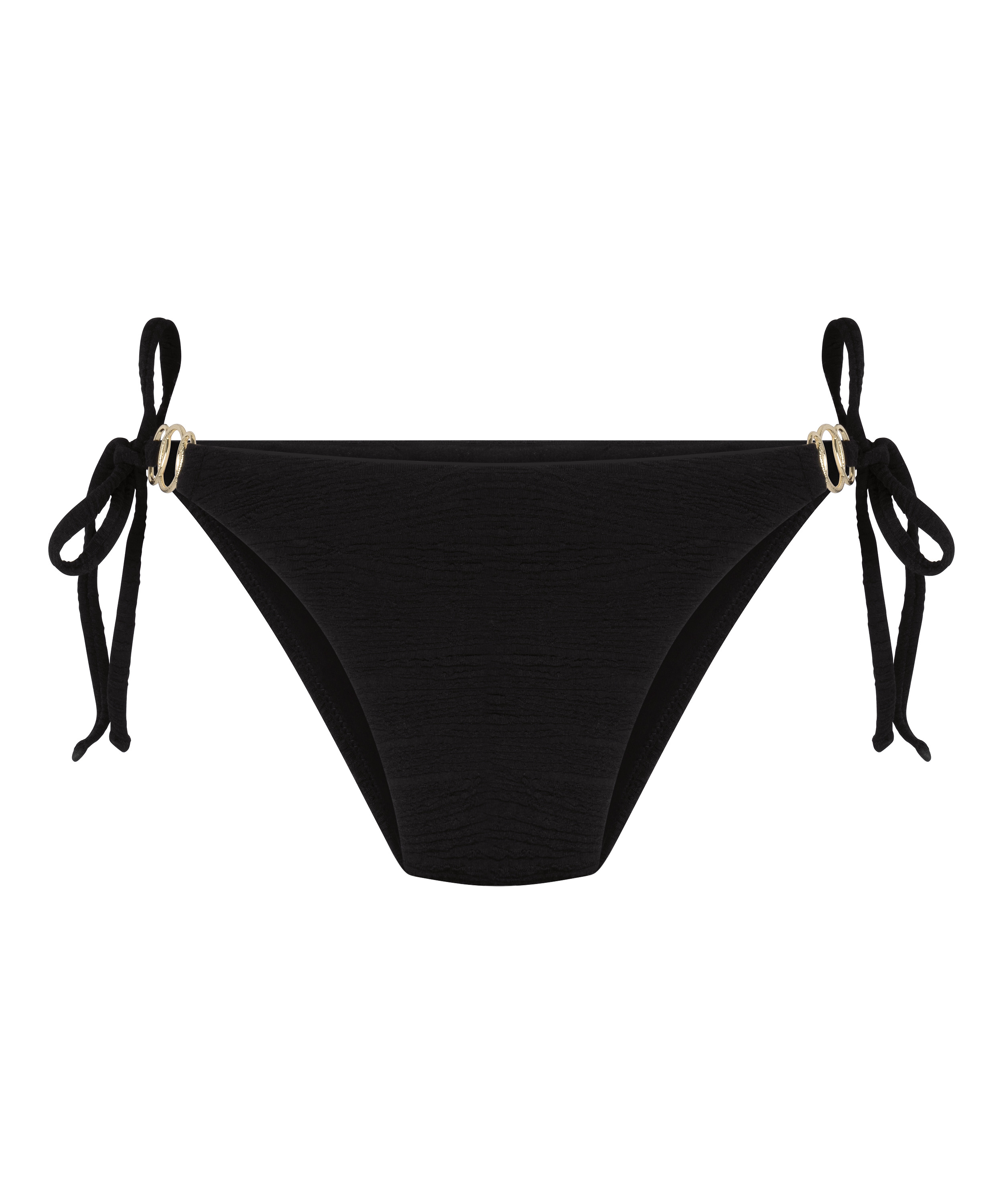 Haz la hora dorada glamurosa con este tanga de bikini negro, que aporta vibraciones elegantes con un toque descarado. Está diseñado para ajustarse a la perfección, con su acabado suave y su cobertura ligeramente atrevida, te sentará de maravilla y te hará sentir segura de ti misma. Combínalo con tu top de bikini favorito y deja que el dorado hable por sí solo.