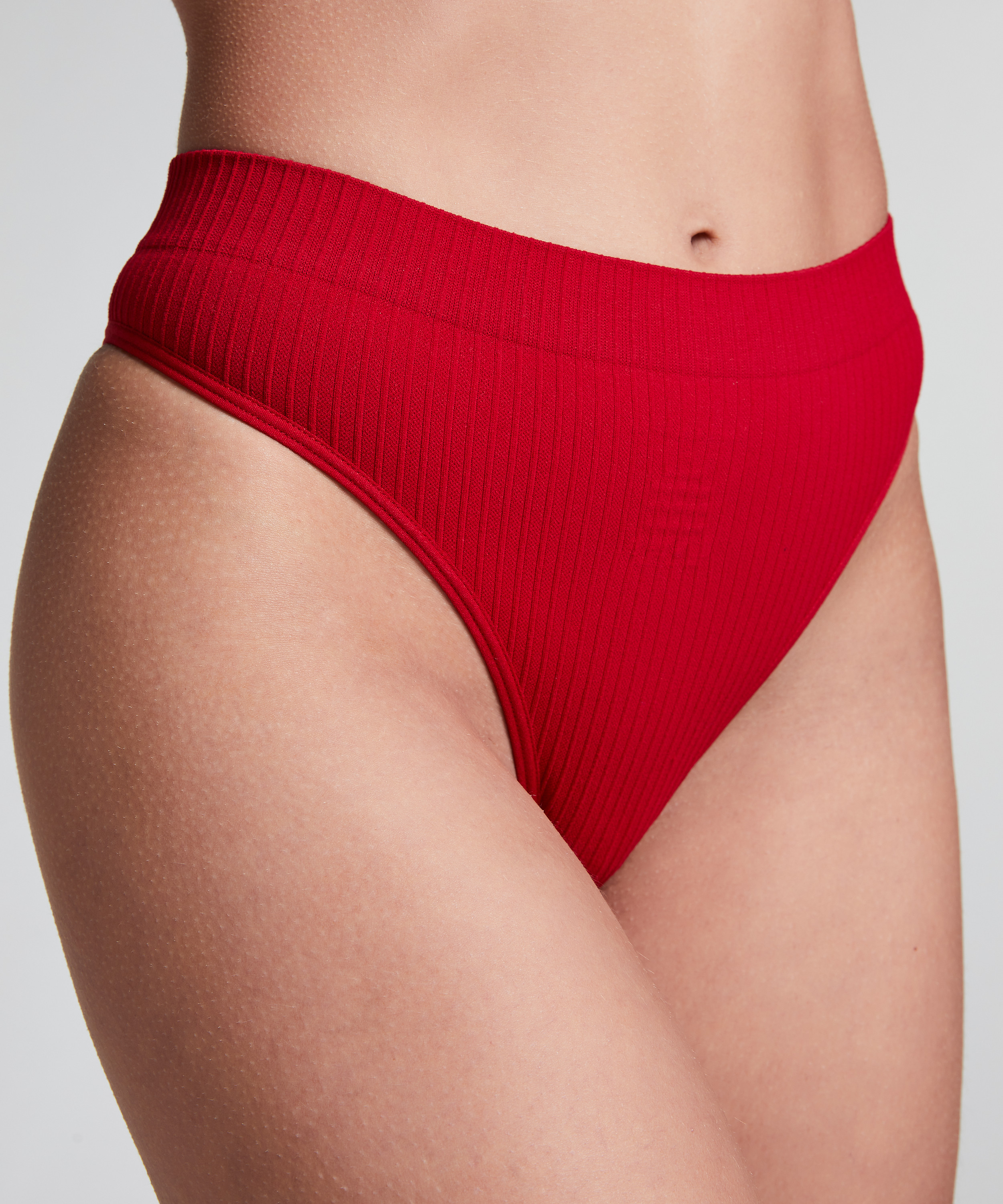 ¡Siéntete cómoda con este tanga! Es muy elástica y está hecha de un precioso tejido de canalé. Combínala con los artículos a juego para completar tu look.