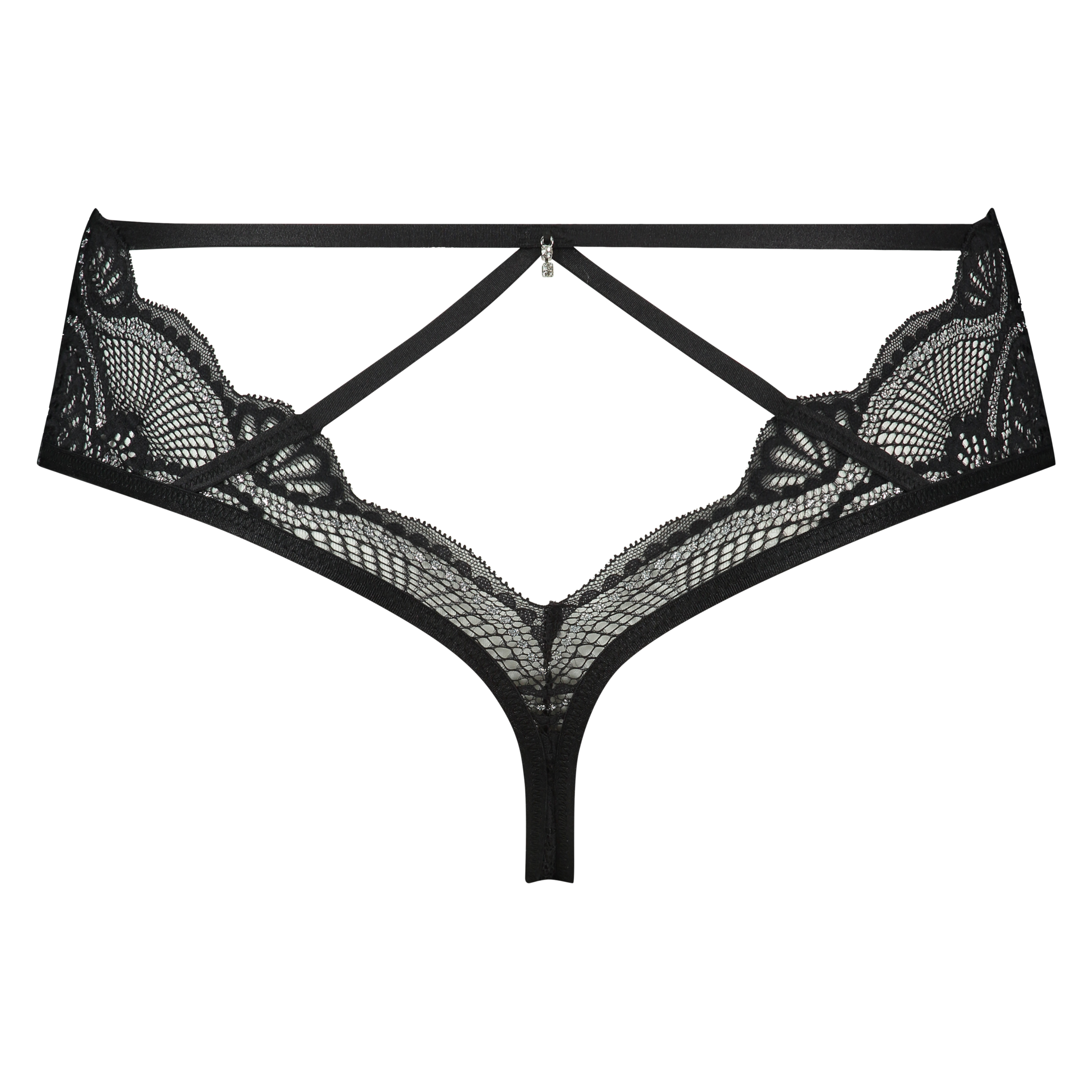 ¡Este tanga es perfecto para una noche de pasión con tu pareja! El tanga está rematado con un borde de encaje con pedrería y tiene detalles de tiras que hacen que quede alto en la cintura. ¡Combínalo con un sujetador a juego de la colección Private!