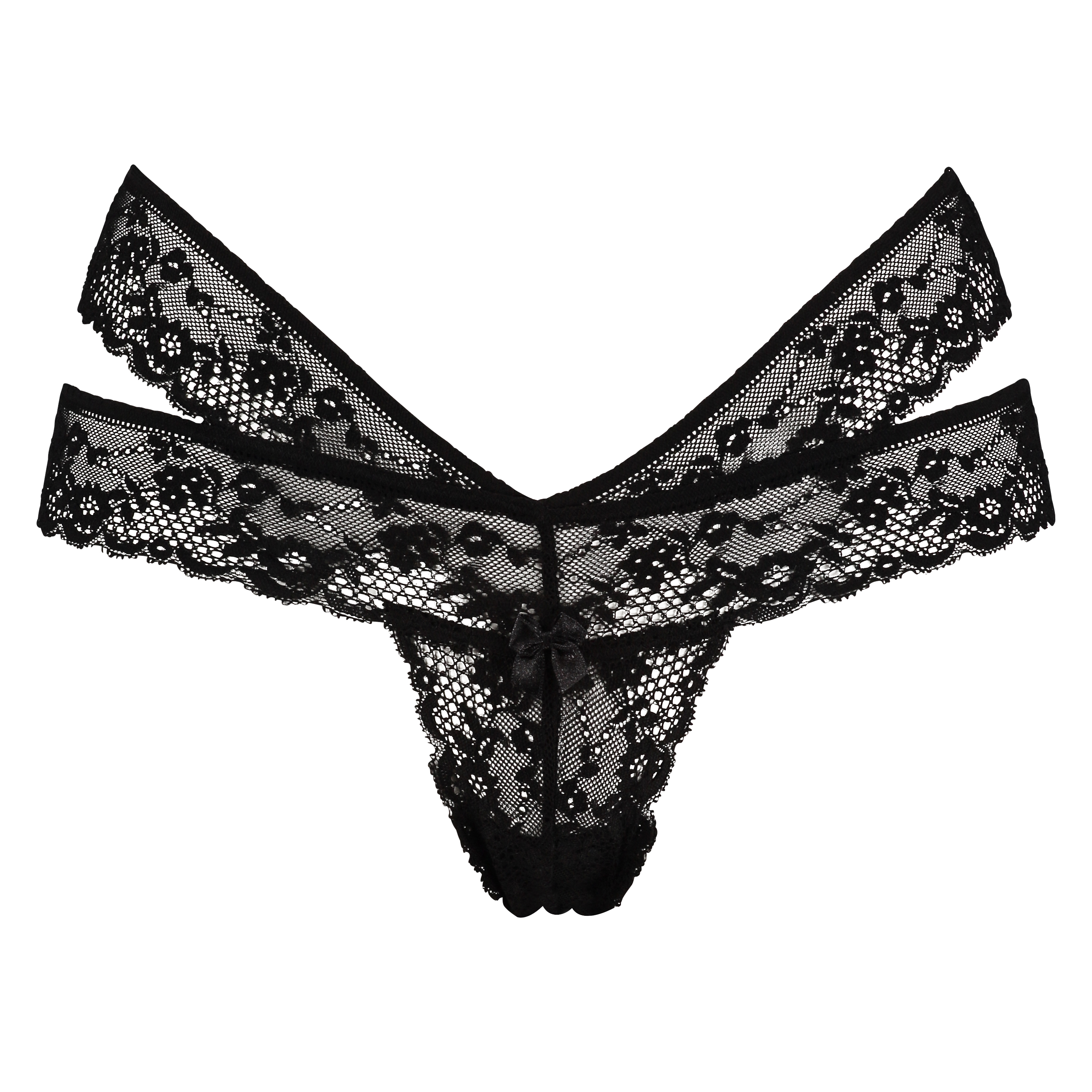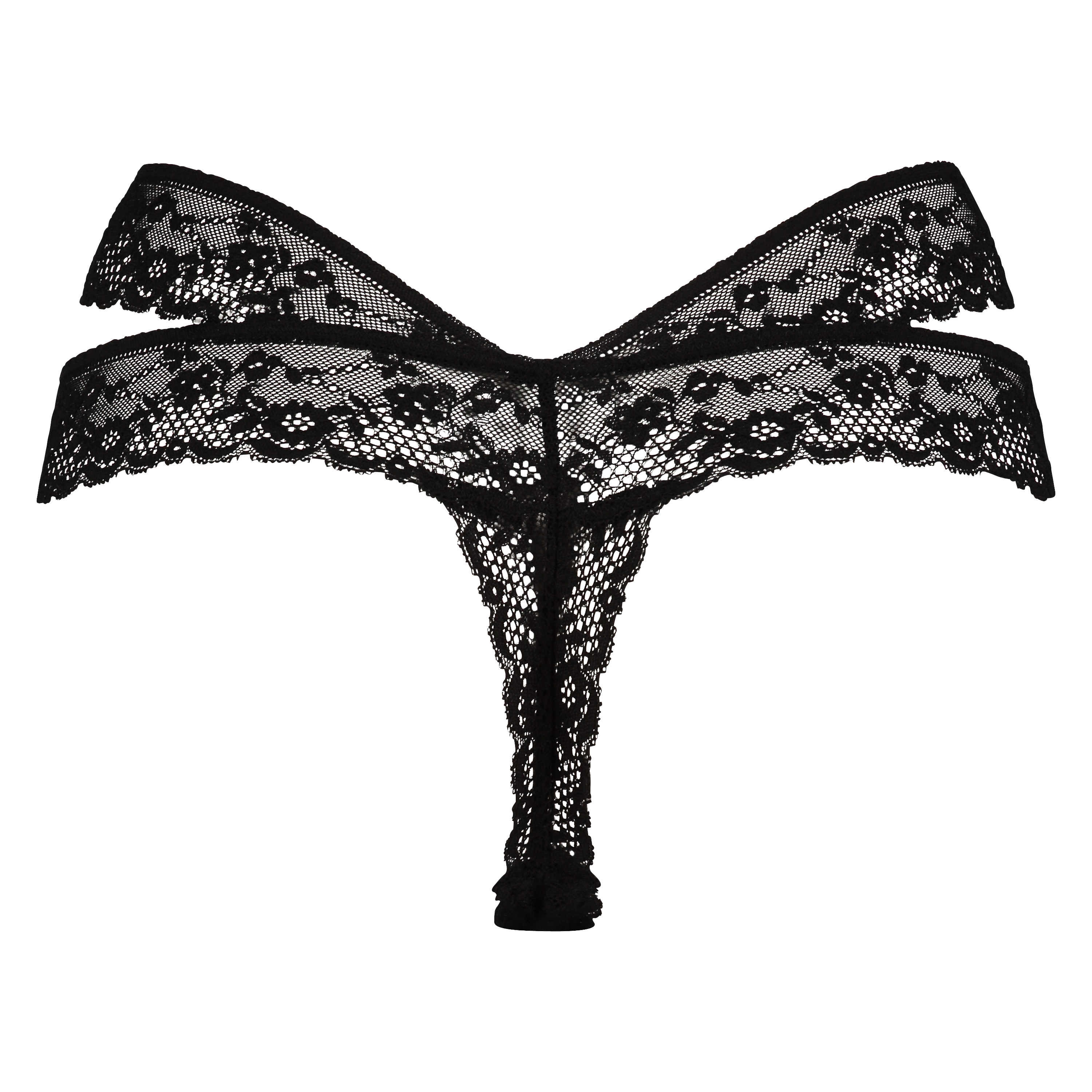 Este tanga hace una forma de V sobre el cuerpo. Sus cintas de dos piezas le dan un aire juguetón.